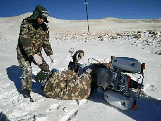 他上初中的儿子坚持陪着父亲巡边