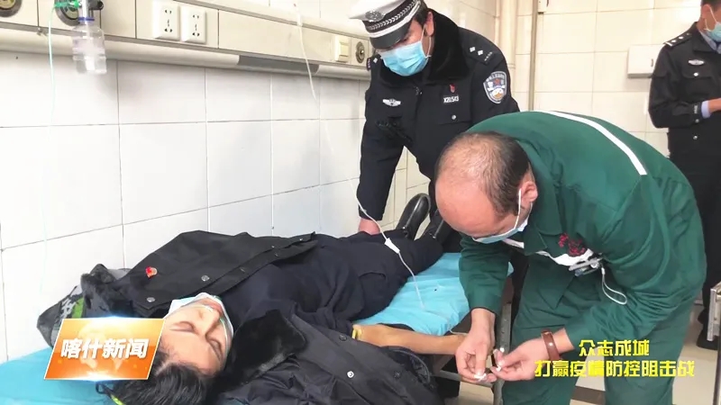 正在执勤的就是叶城县公安交警大队的吐尔逊阿依·麦麦提。在疫情防控期间,坚守岗位,对过往车辆、人员进行检查登记,但就在前几天她因连续20多天的坚守,过度劳累,晕倒在了执勤监测点。