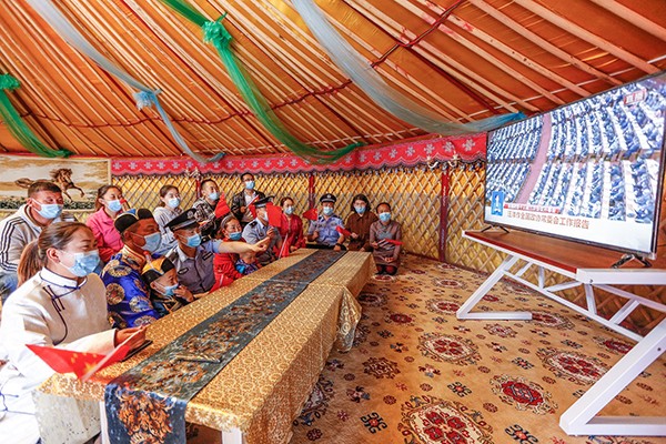 2020年全国两会隆重召开,博尔塔拉蒙古自治州边境管理支队民警走进博尔塔拉蒙古自治州边境辖区各处,进牧区、到草场、进学校、到农家采取与牧民、学生、结对亲戚一同观看直播、现场双语讲解和带电脑送直播等相结合的方式,向边境辖区群众直播两会盛况,宣传两会精神,传递党的最新利民惠民政策。