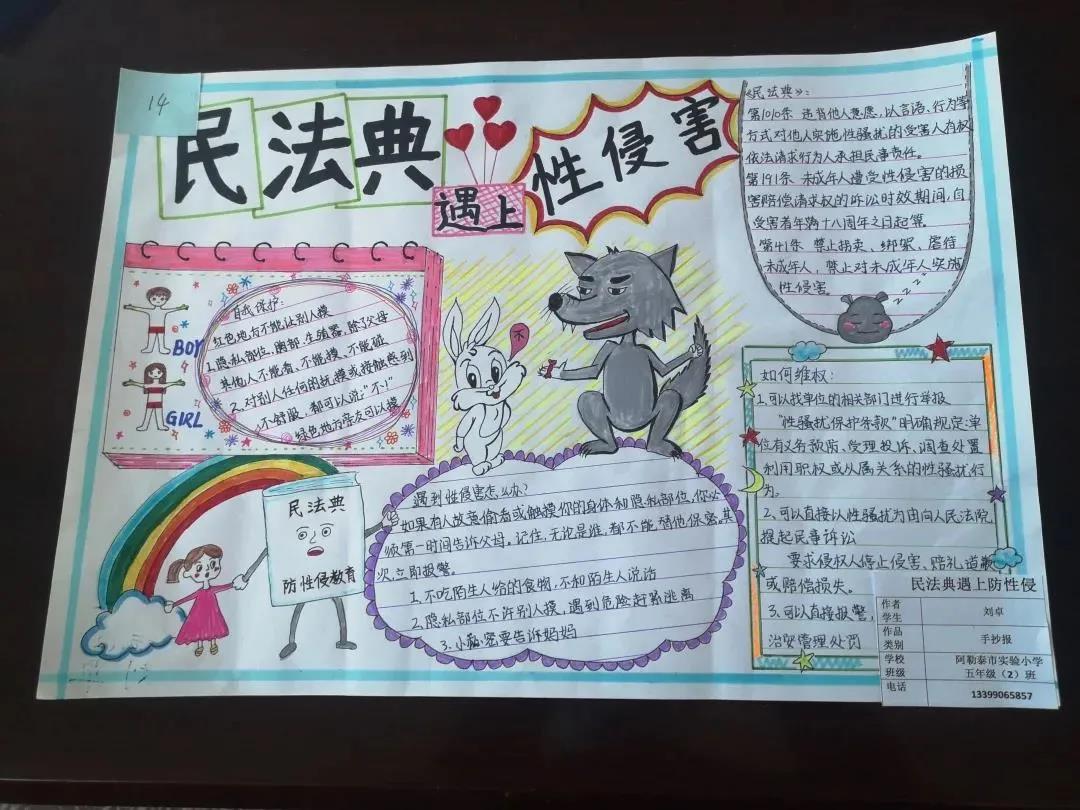 阿勒泰地区阿勒泰市人民检察院联合阿勒泰市教育局举办以“民法典遇上防性侵”为主题的手抄报比赛,开展“宪法宣传进校园”活动,进一步加强青少年宪法、民法典学习教育,培养青少年法治意识、自我保护意识。(阿勒泰市检察院)