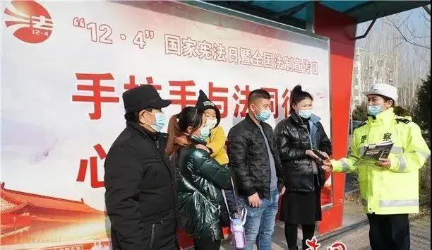 巴音郭楞蒙古自治州库尔勒市公安局交警大队宣传中队组织交警深入到辖区开展宪法宣传周活动,向过往群众宣传宪法等法律法规,力争让宪法精神深入人心。(严万海)
