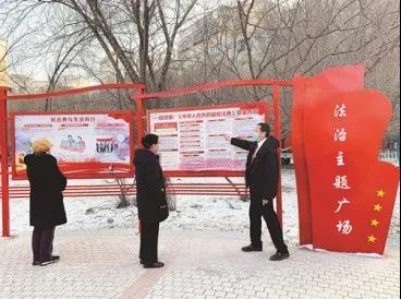 乌鲁木齐市中级人民法院法官利用晨光社区“法治主题广场”,开展“送法进社区 '典'亮你我他”活动。该院民事审判第二庭法官丁勇为居民讲解民法典知识。(乌鲁木齐市中级人民法院)