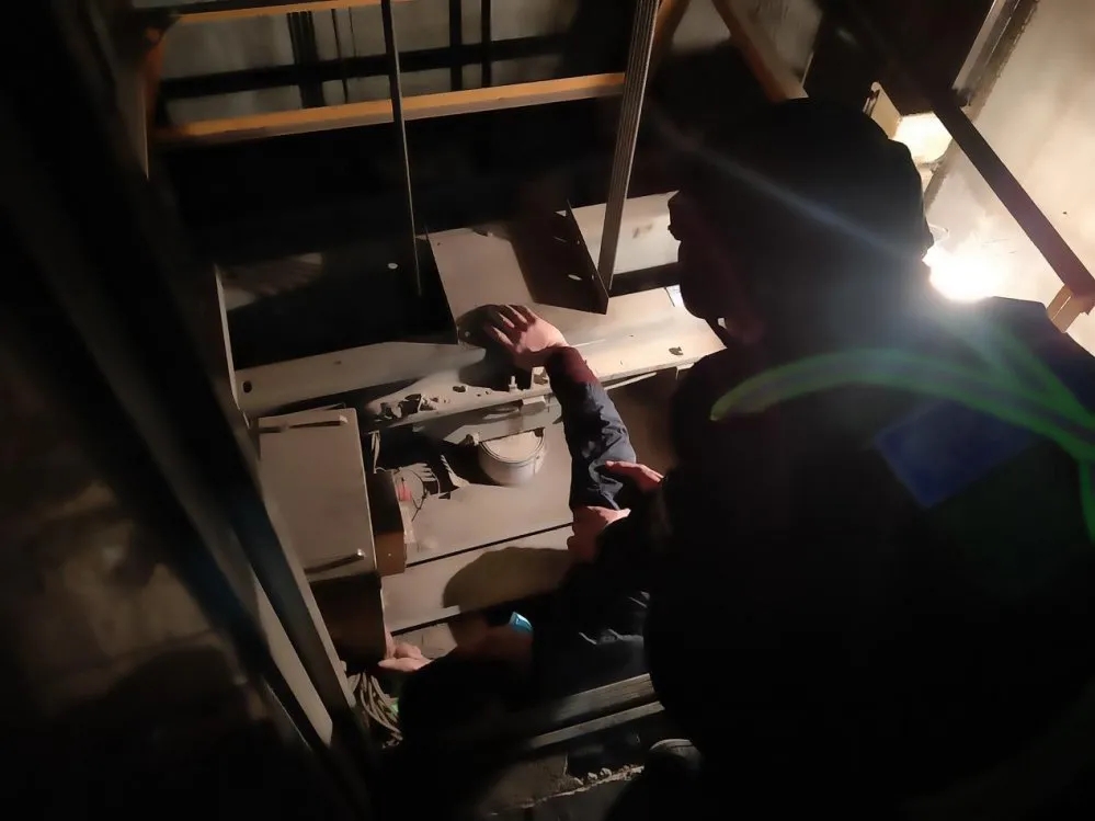 2月23日,新疆阿克苏市某小区内一名维修工正在修理电梯监控,不料电梯突然上升,导致维修工的左腿被卡住,经阿克苏市公安局民辅警及时救援,维修工已脱离危险。