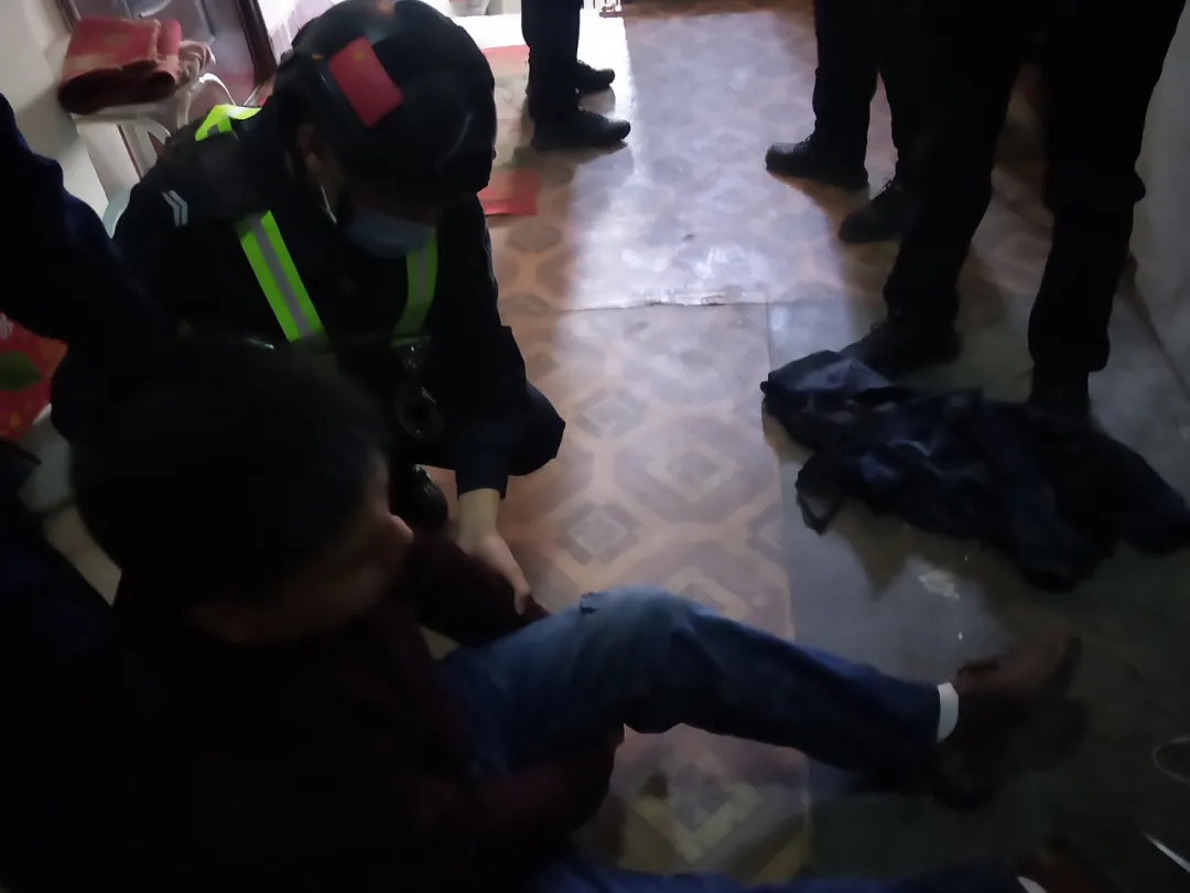 接警后,民警毛兰江·麦麦提火速赶往事发现场,同时拨打120、119请求协同处置。到达现场后,民警一边询问伤者情况,一边安慰伤者保持冷静,并端来一杯水给伤者喝下。随后与及时赶到的消防救援人员、物业人员商讨解救方案。