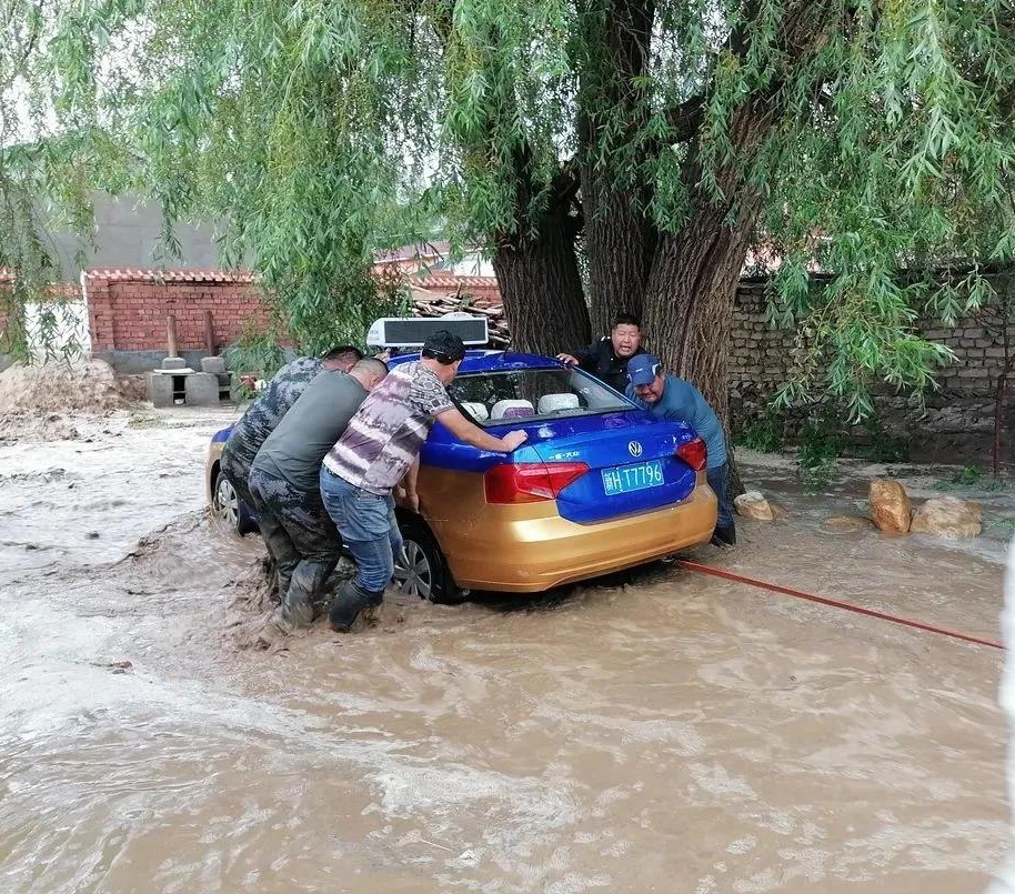 在现场,民辅警们下水坑、疏渠道、转牲畜,挨家挨户查看受灾情况,共排查险情40余处、转移牛羊等牲畜200余头,全力保障人民群众生命财产安全。(李展朋 )