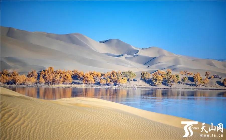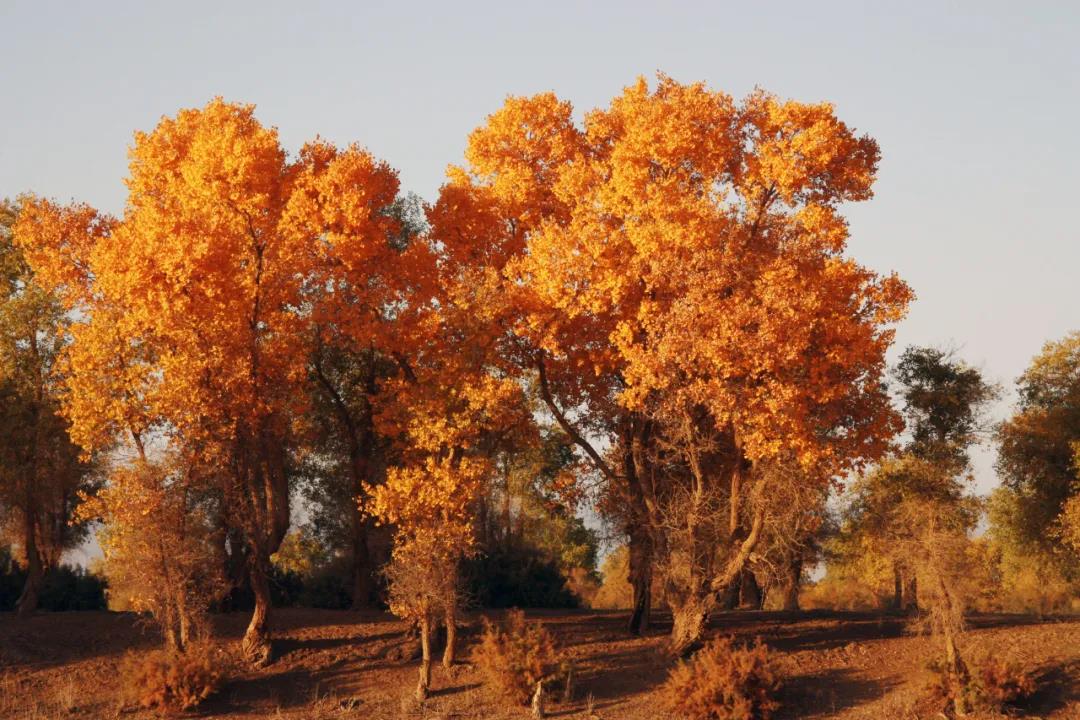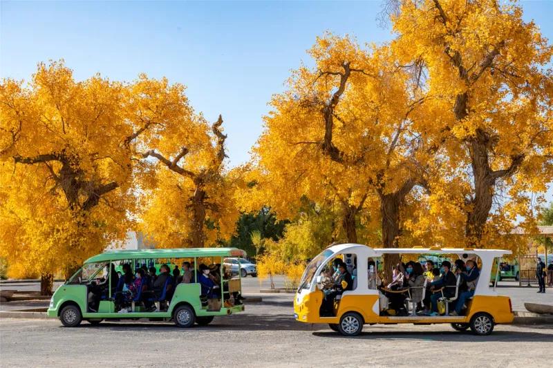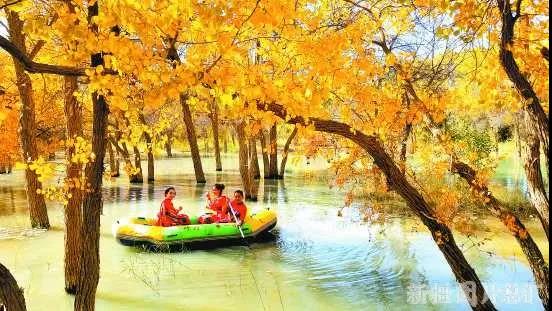 位于尉犁县的罗布人村寨景区集沙漠、胡杨、河流、湖泊于一体,景区内金色沙海浩瀚无边,塔里木河与渭干河在此交汇,原始胡杨林在沙海与碧波中熠熠生辉。游客不仅可以赏胡杨,还可以在沙漠中滑沙山、骑骆驼、体验沙漠越野、坐滑翔机。