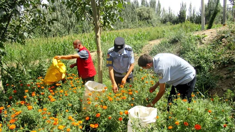 辖区赫大爷种植的万寿菊已到采摘时节,