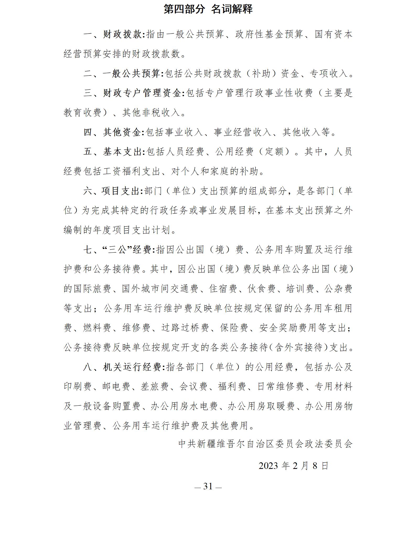 中共新疆维吾尔自治区委员会政法委员会部门2023年度预算公开