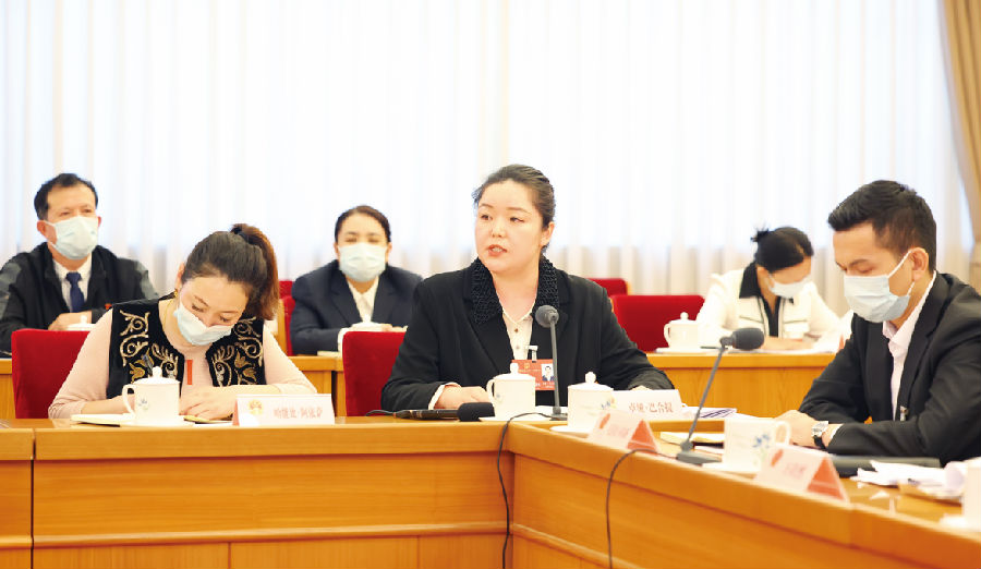 3月9日,出席十四届全国人大一次会议的新疆代表团在驻地举行小组会议,审议最高人民法院工作报告、最高人民检察院工作报告。卓娅·巴合提代表围绕加强文物和文化遗产司法保护等内容发言。