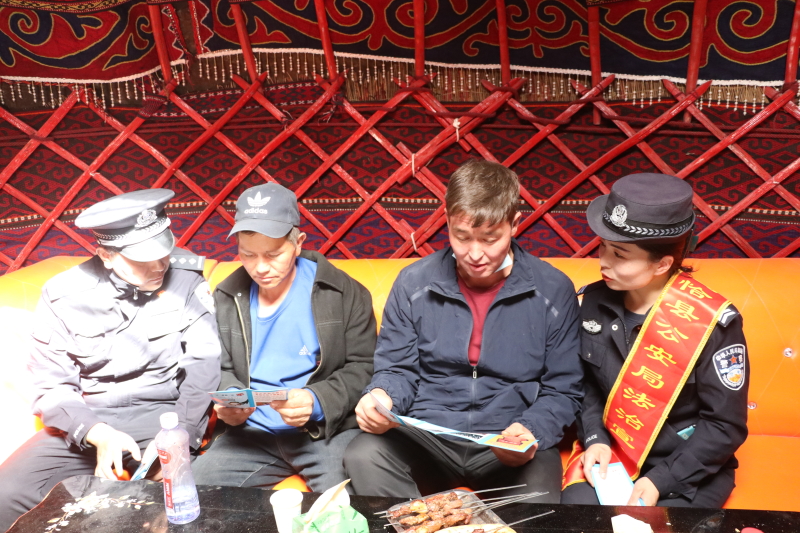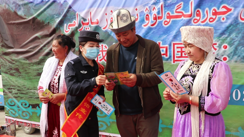 3月25日,乌恰县公安局民警在赛马场周边向牧民群众普法。通讯员 纪涵岐摄3月24日,乌恰县公安局民警在赛马场周边开展普法宣传工作。通讯员 纪涵岐摄