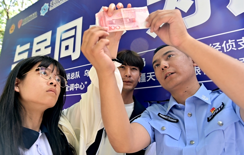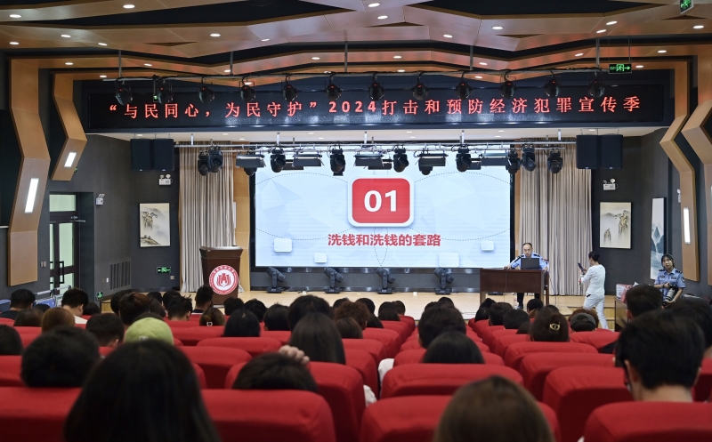 5月16日,自治区公安厅经济犯罪侦查总队联合乌鲁木齐市公安局经济犯罪侦查支队和乌鲁木齐市公安局高新区(新市区)分局经济犯罪侦查大队走进新疆财经大学开展防范经济犯罪、反假币、反洗钱知识讲座。石榴云/新疆法治报记者 单坤摄