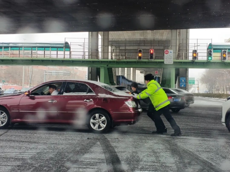 12月9日早高峰起,乌鲁木齐交警启动恶劣天气一级响应,依托“交警+警务站”联动机制,在全市重点路段设置执勤点位,8时30分全员到岗到位,做好交通疏导和救援服务工作。同时应用视频快处、清障车拖移等方式快速撤离事故现场,合理做好远端分流,减少交通事故对道路通行的影响。并且对接城市运维、交通运输、应急救援等部门,在332处点位储备防滑物资,配合做好清雪除冰工作,尽快恢复道路通行。