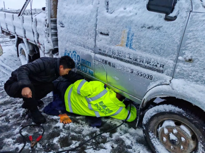 12月9日开始,巴州和静县北部山区出现大风、强降雪天气,部分路段同时伴有风吹雪,能见度低,道路结冰现象,和静交警全员出动,奋战疏导交通,同时加强与县应急管理局、公路局、交通局等部门联动,做好交通疏导协调工作,及时救助车辆、群众。大队先后发放生活物资410余件(箱),救助故障车辆200余辆。