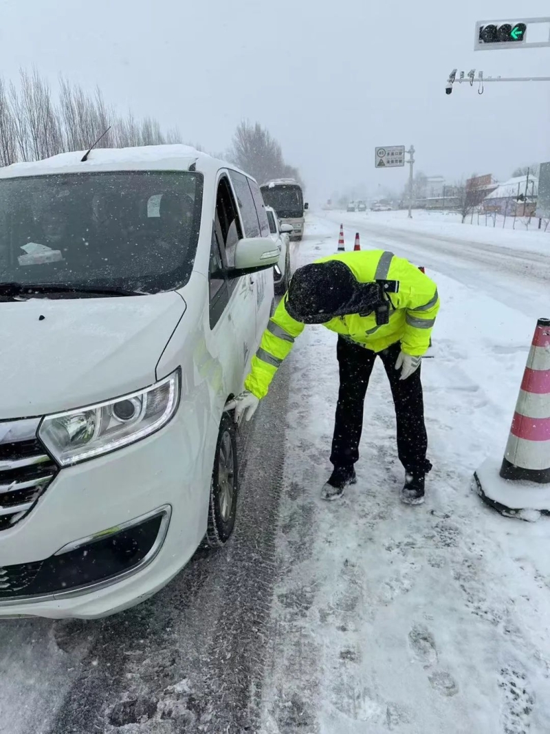 和田交警及时对易积雪、易结冰的关键路段实施重点布控,确保警力在紧要关头能迅速集结,有效应对。执勤民警不畏严寒,加大巡逻频次,及时发现并妥善处置因雪情引发的交通障碍与安全隐患。在积雪深厚的路段,民警们助力车辆脱困,清扫路面积雪,为车辆安全通行开辟出一条条生命之道。