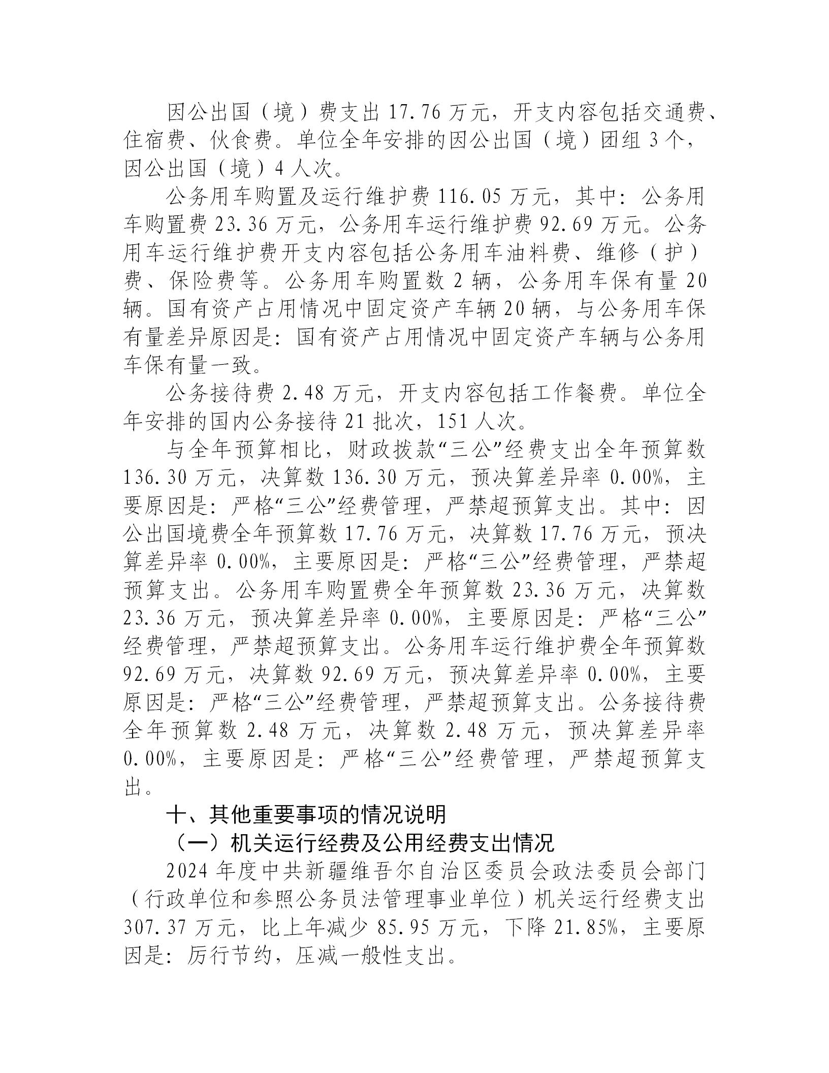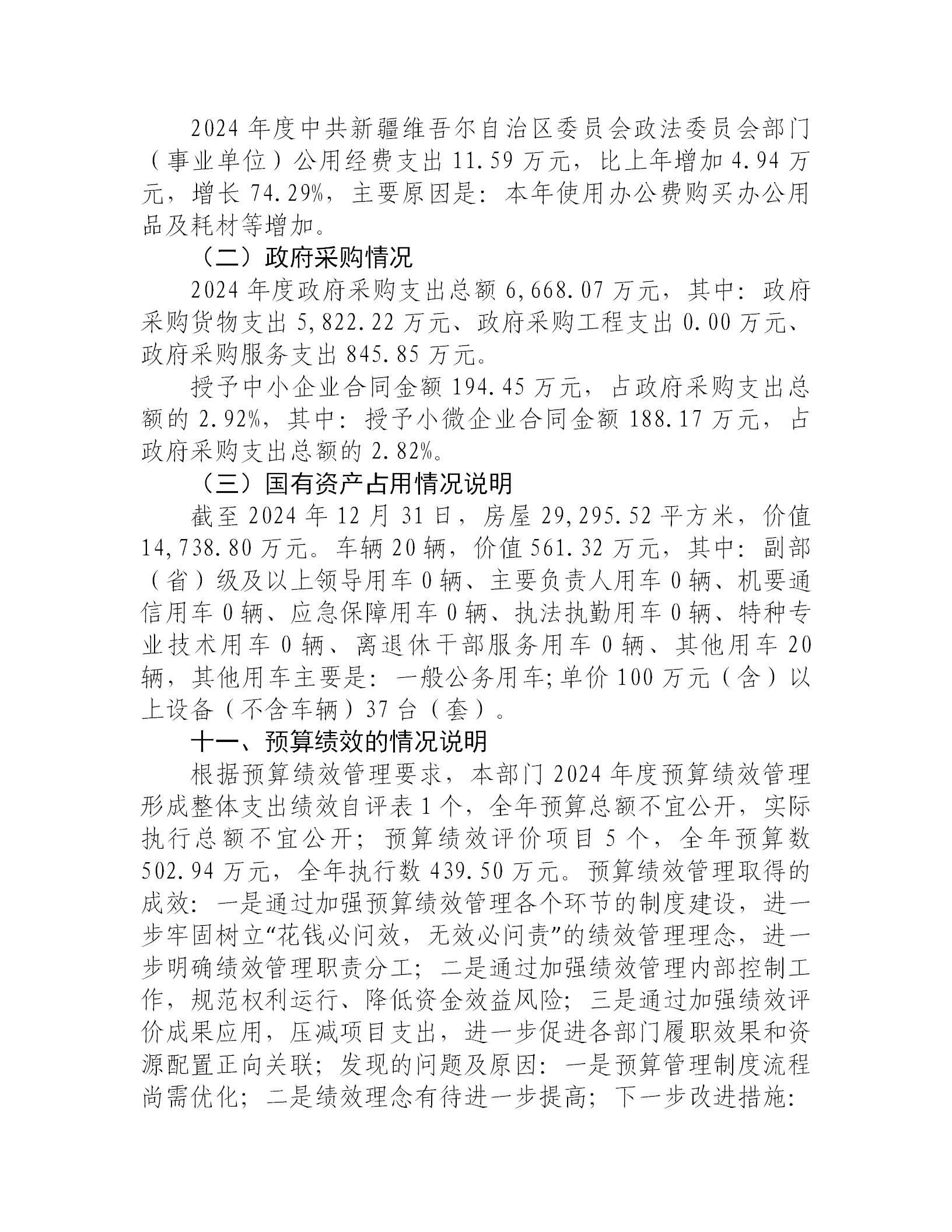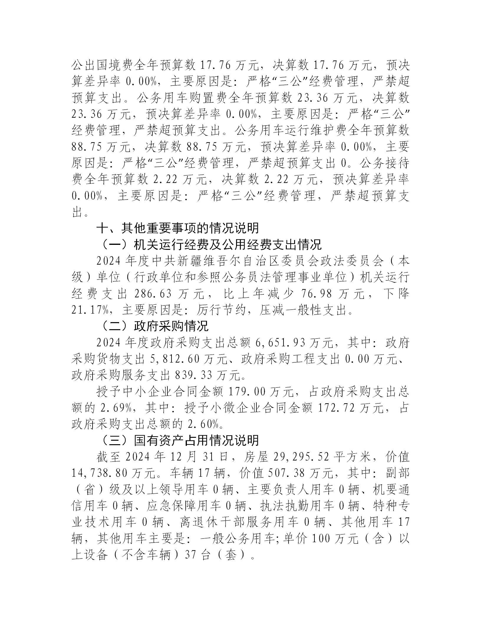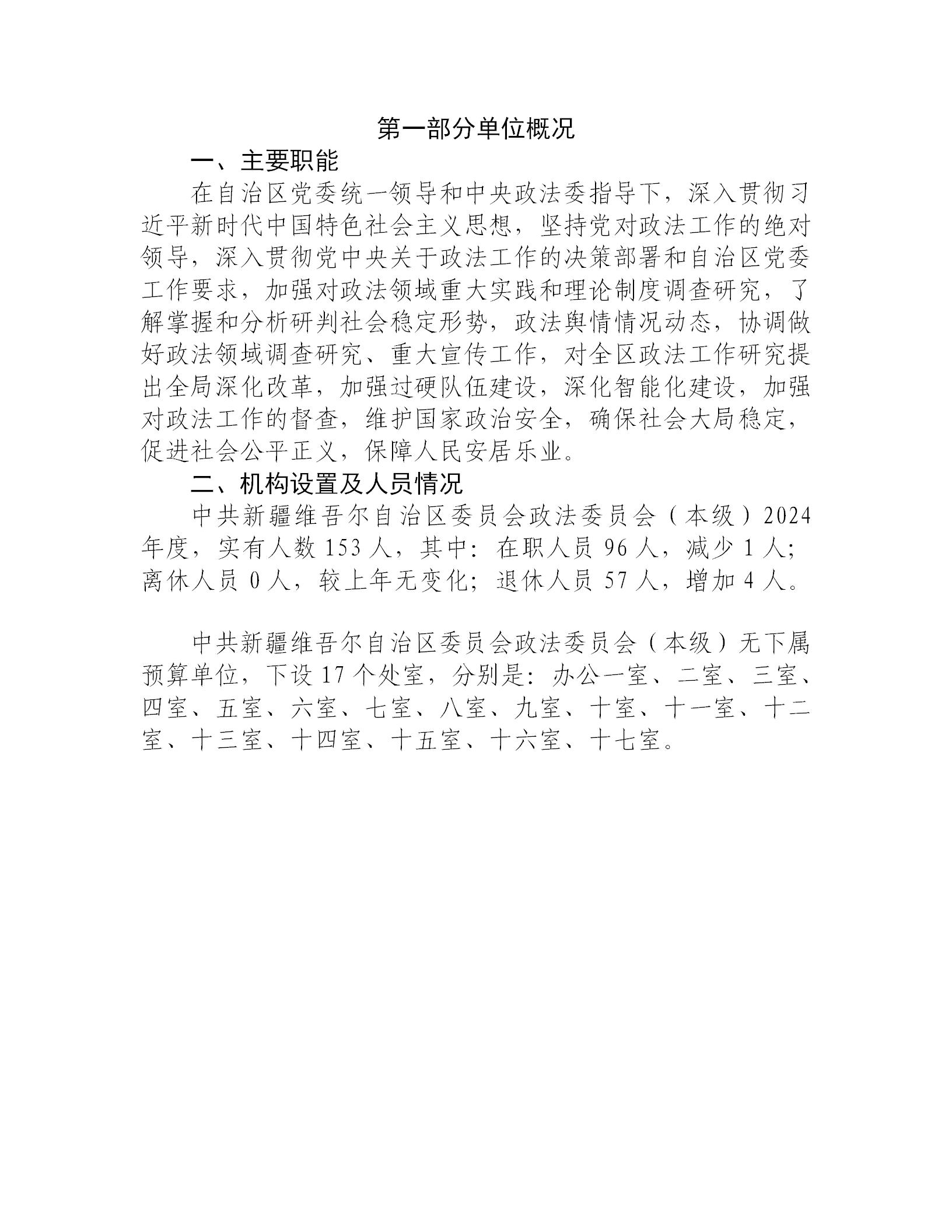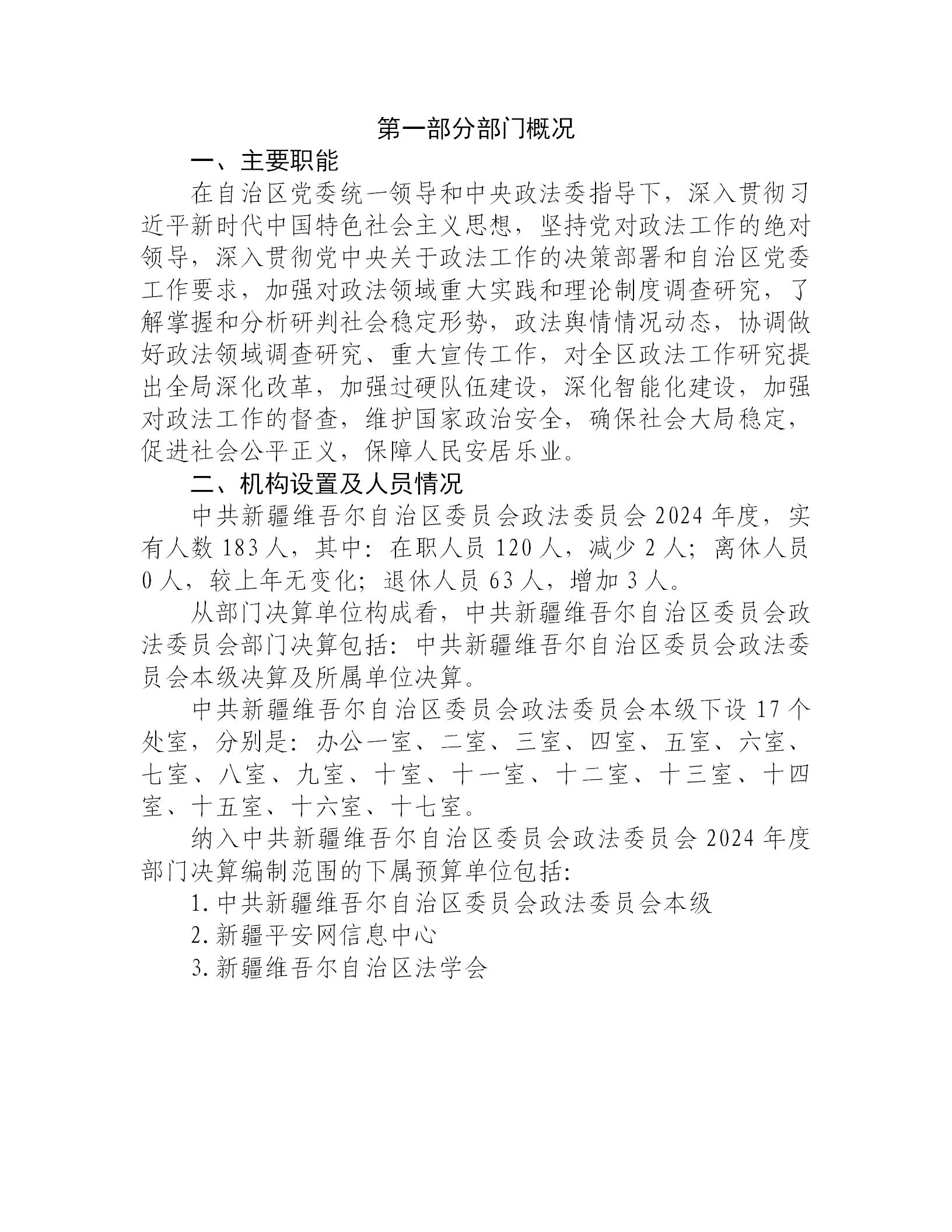 中共新疆维吾尔自治区委员会政法委员会2024年度部门决算公开