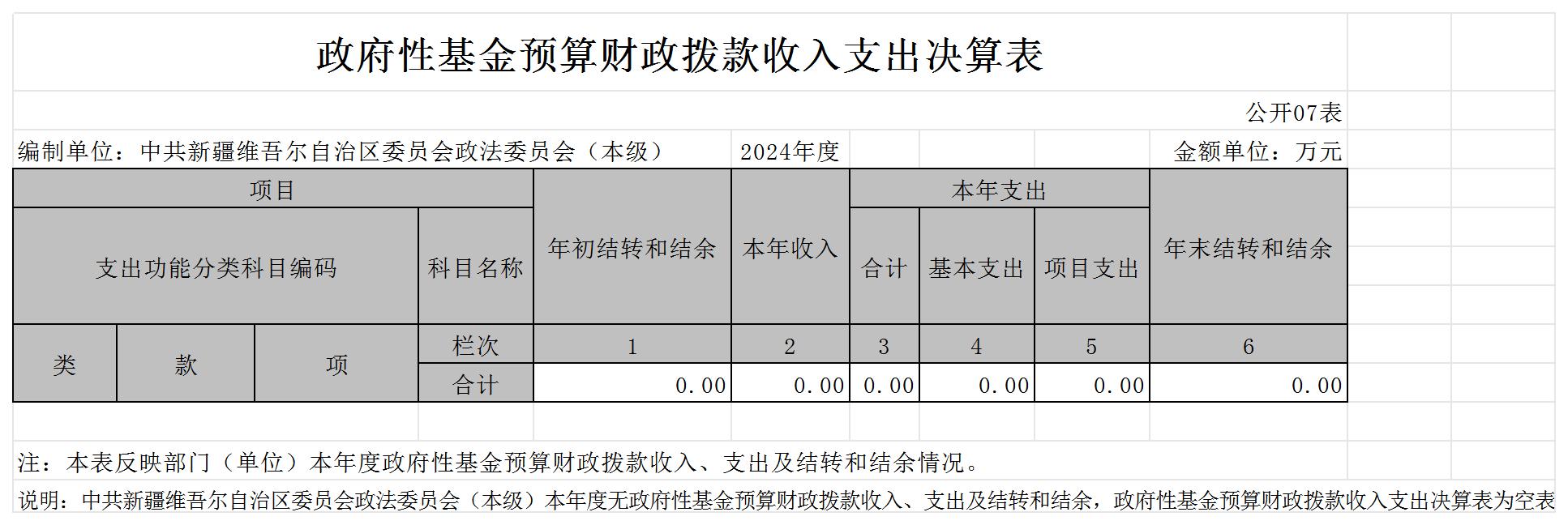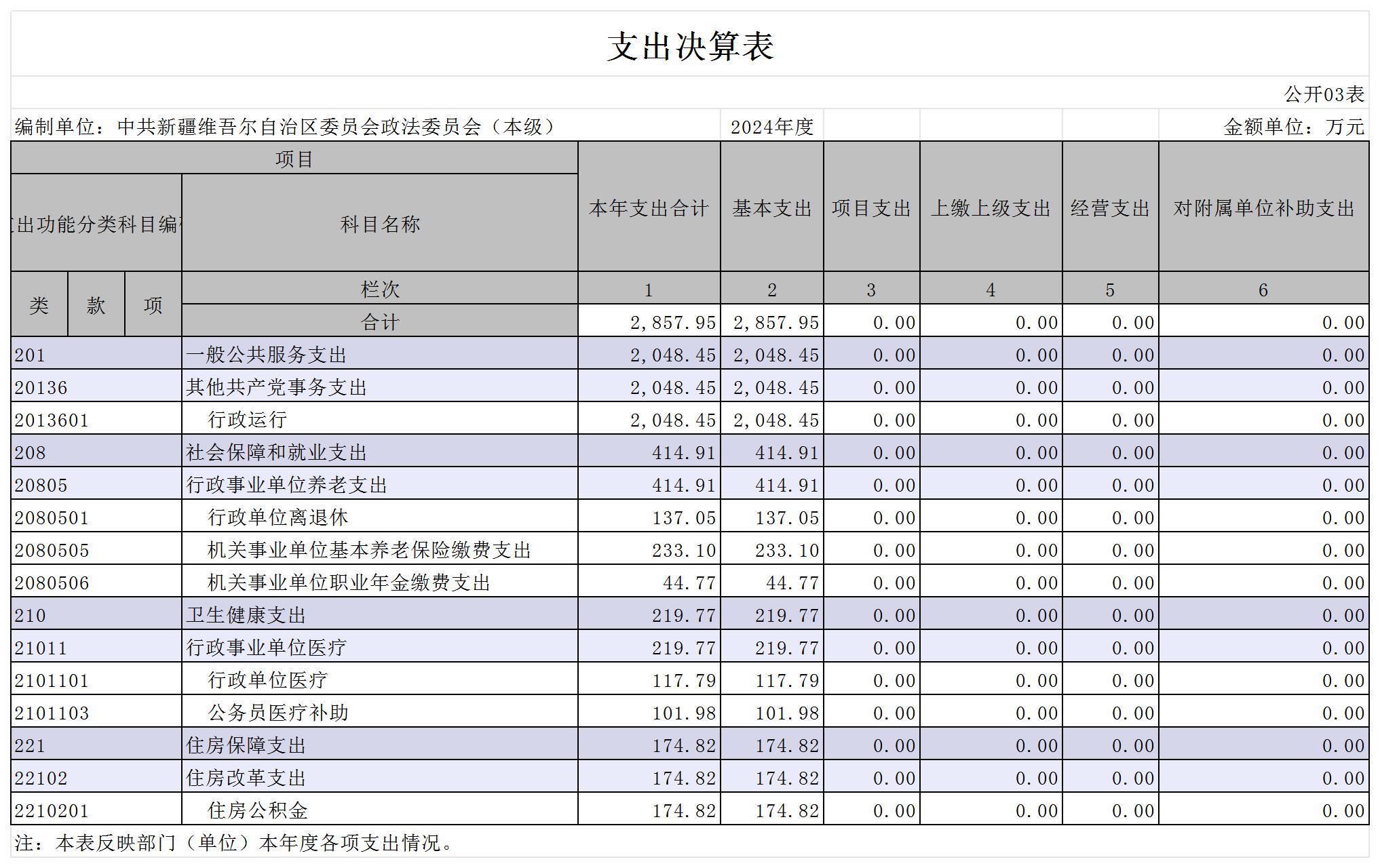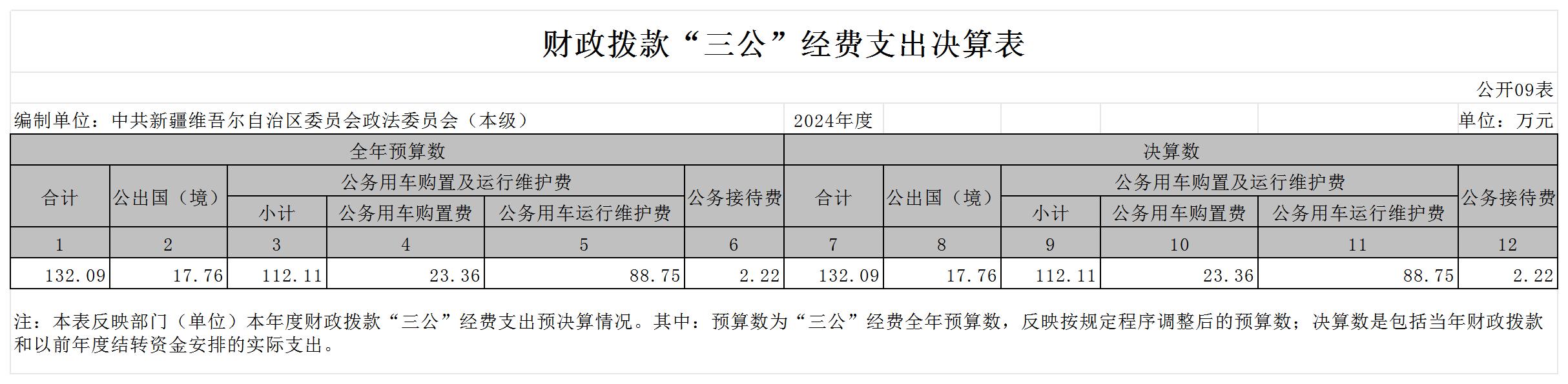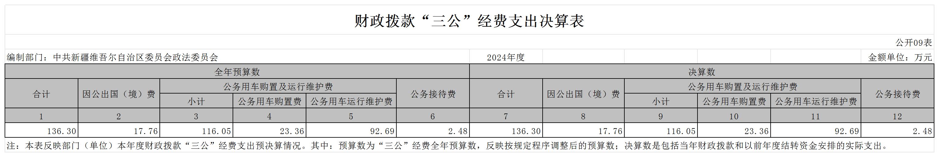 中共新疆维吾尔自治区委员会政法委员会2024年度部门决算公开