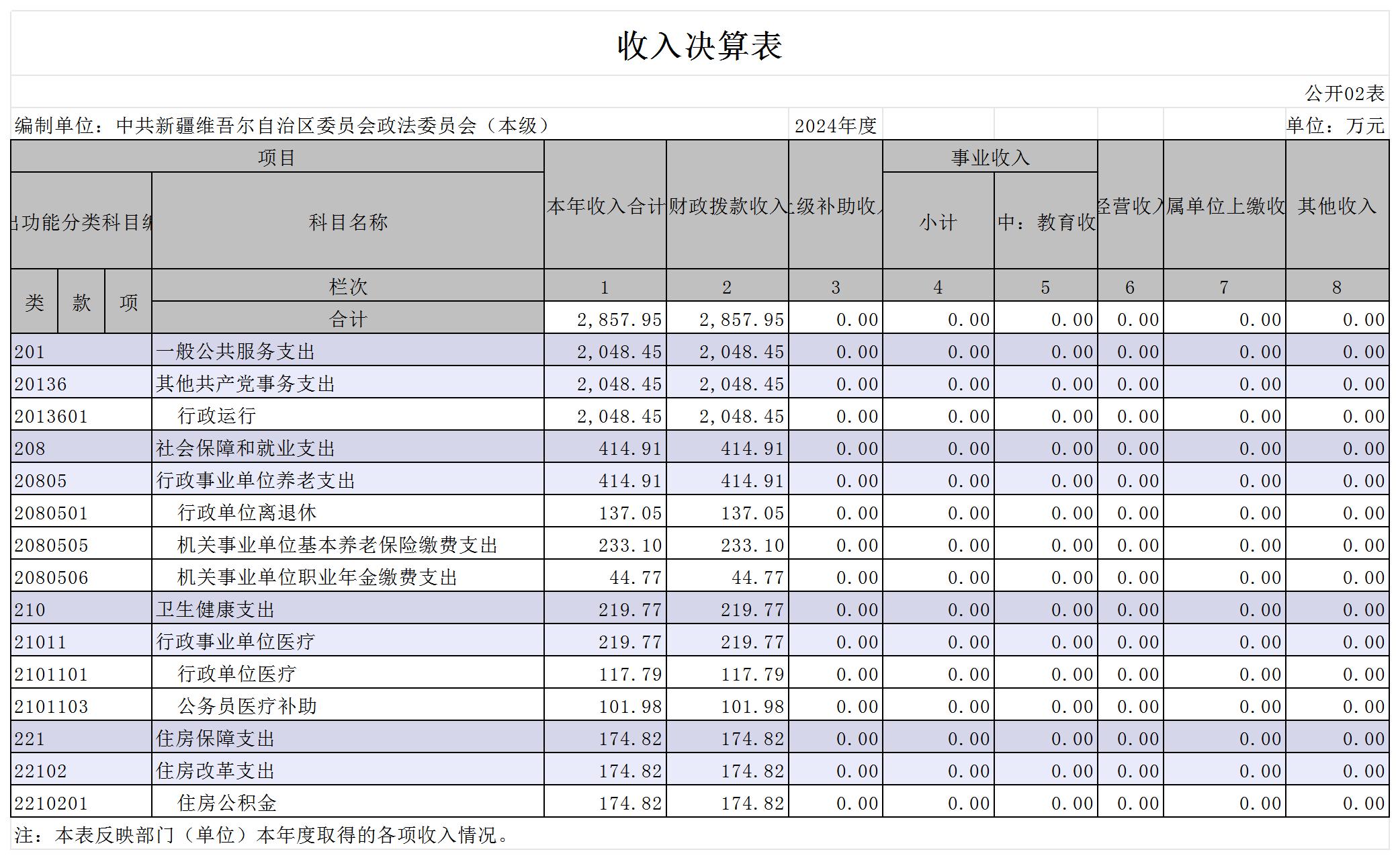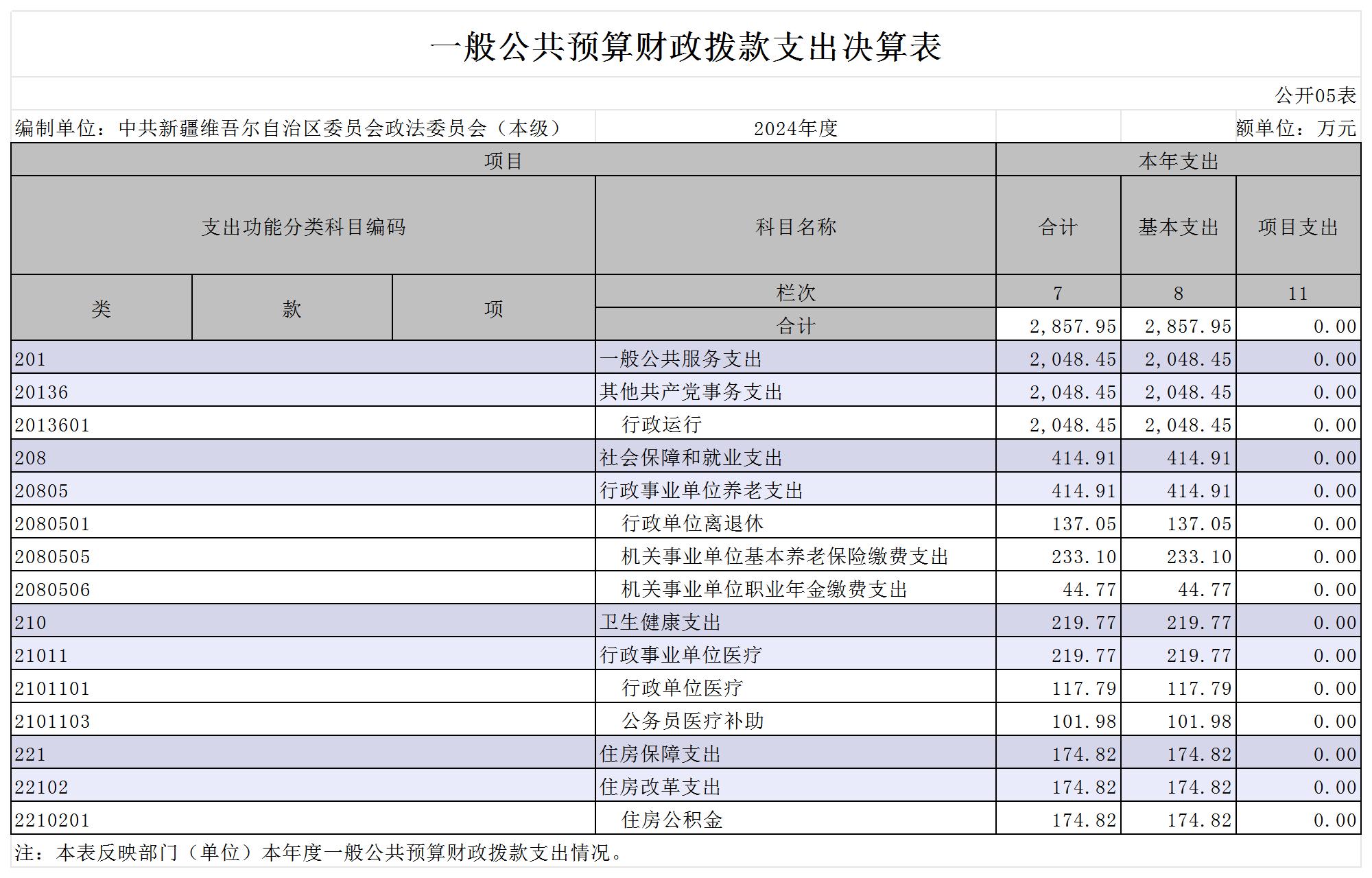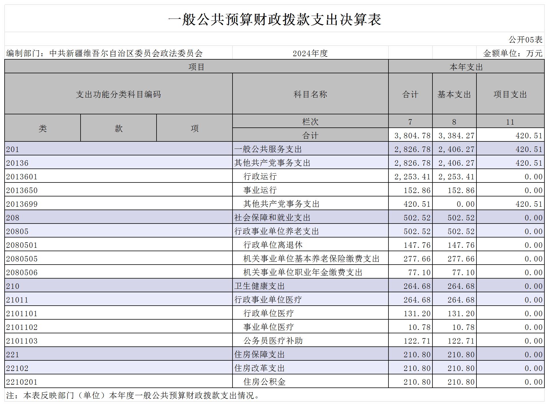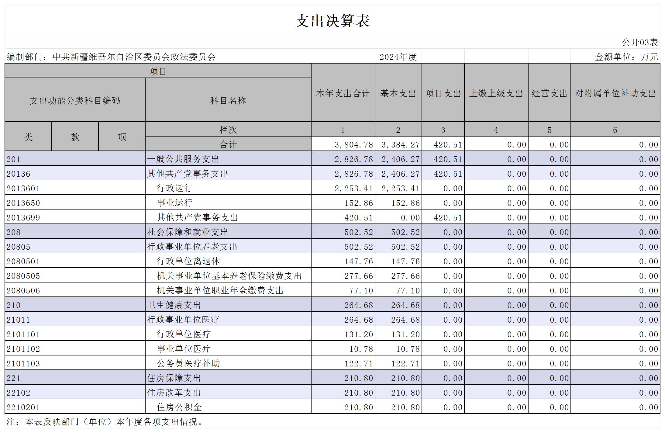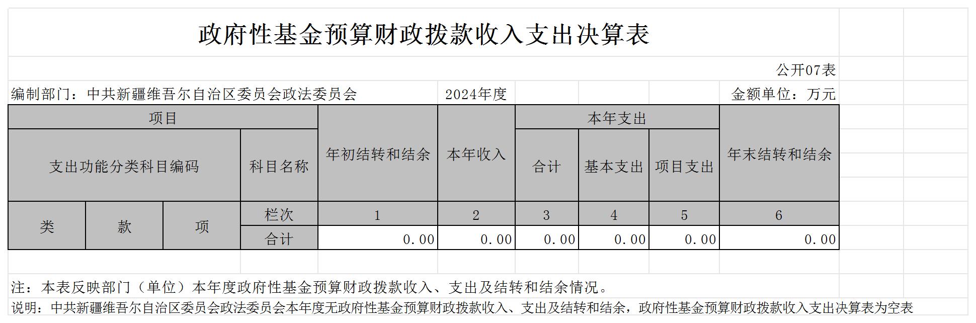 中共新疆维吾尔自治区委员会政法委员会2024年度部门决算公开