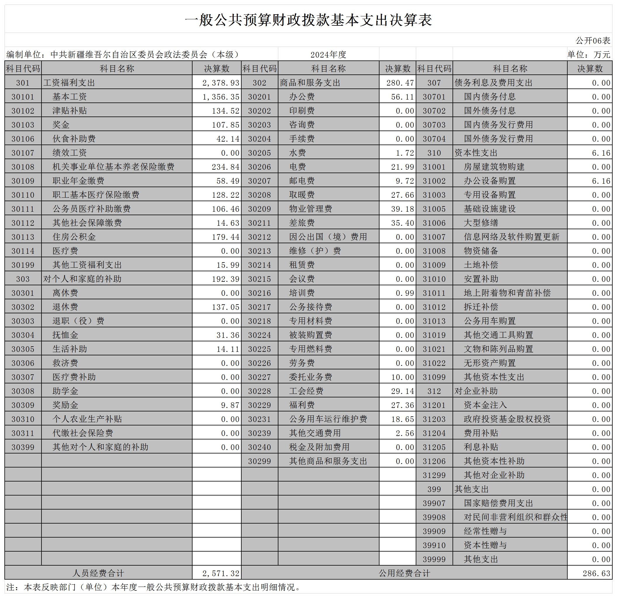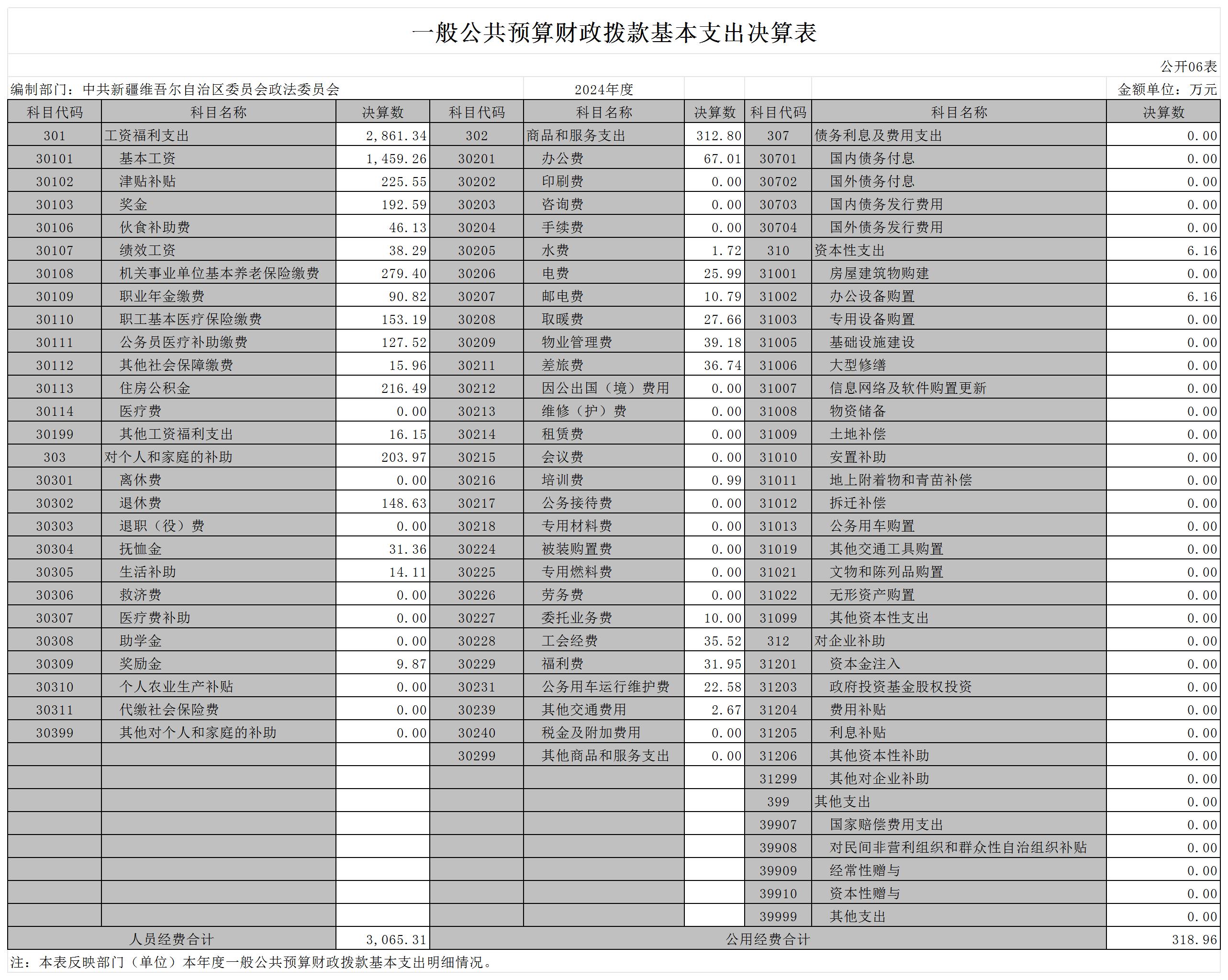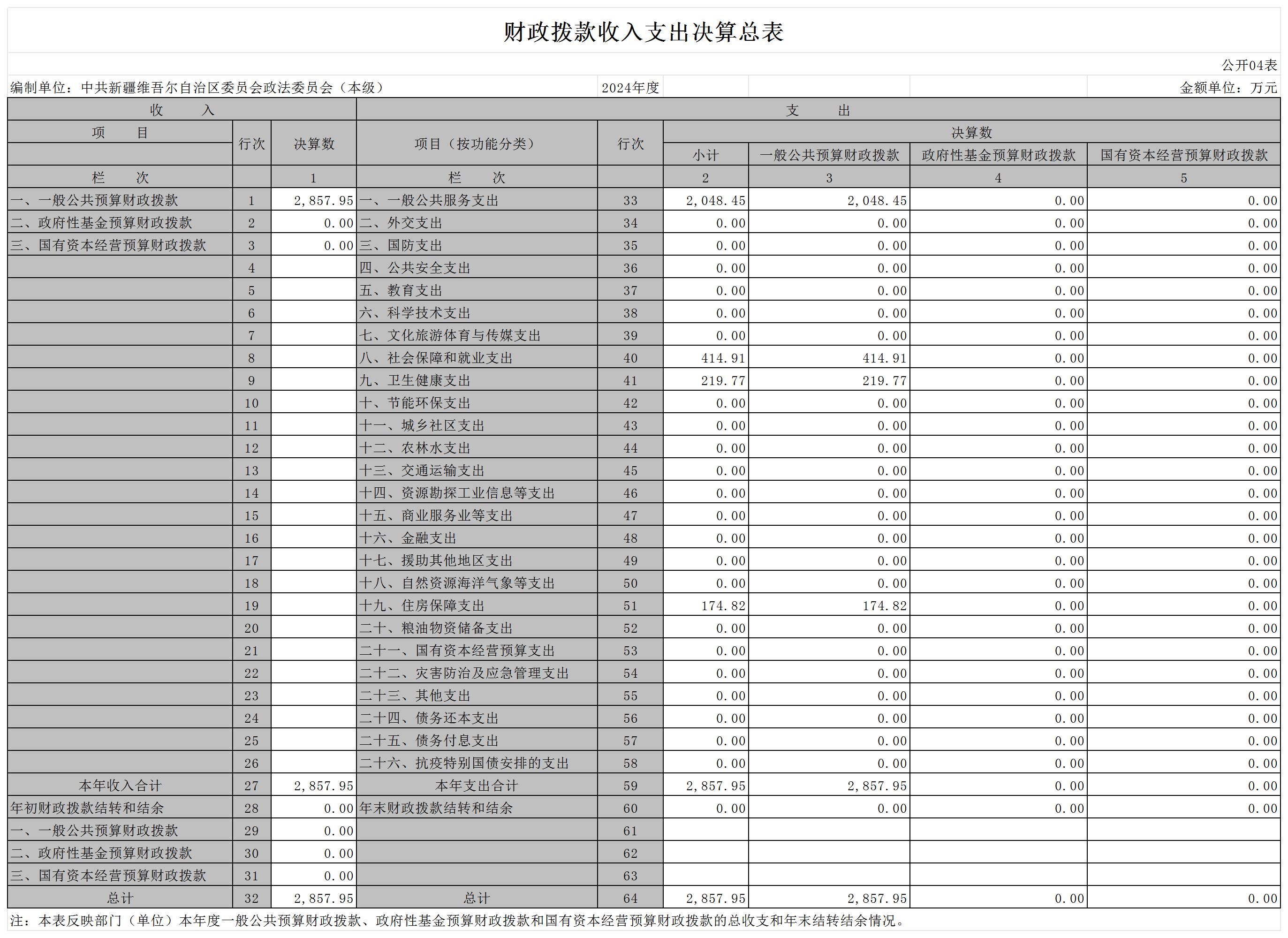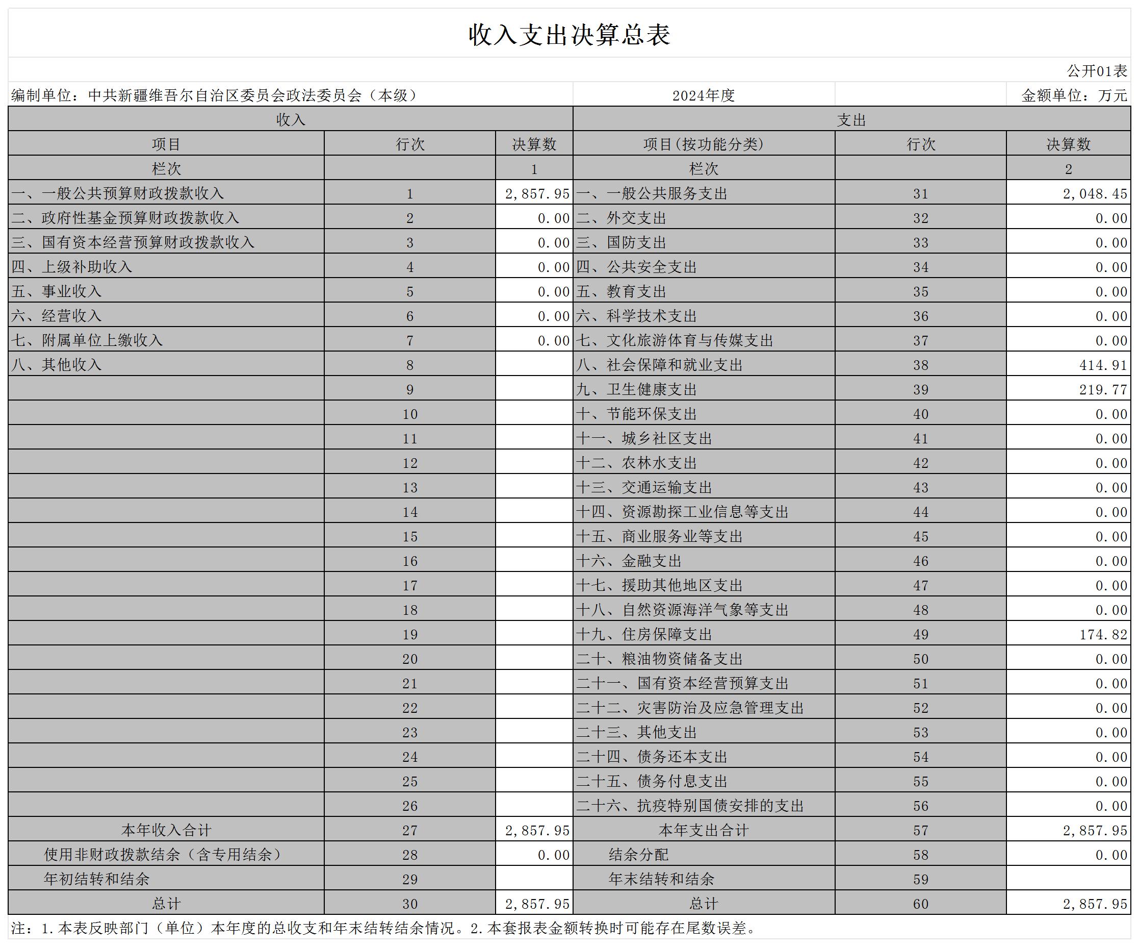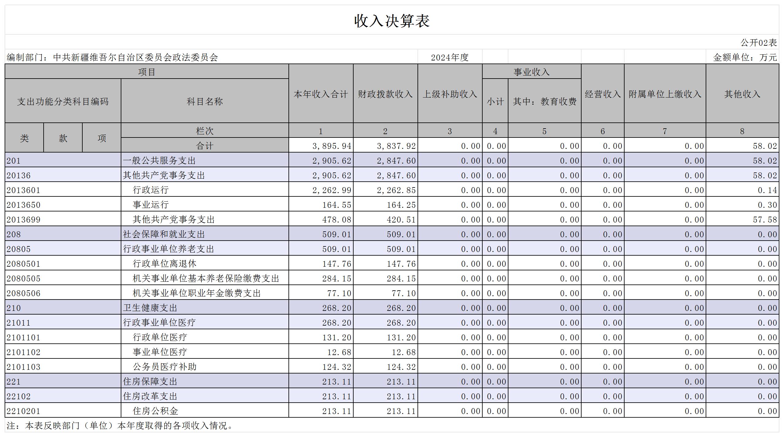 中共新疆维吾尔自治区委员会政法委员会2024年度部门决算公开