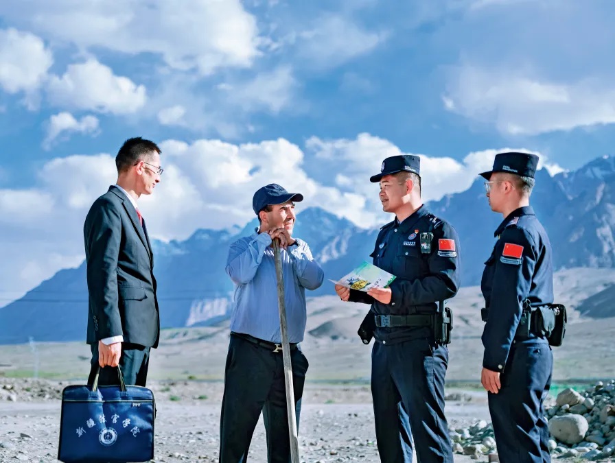 2024年7月22日,新疆喀什边境管理支队塔什库尔干边境派出所联合塔什库尔干县人民法院法官走进辖区农牧民生产作业点宣讲法律法规,解答群众疑难问题。 视觉中国 王九峰/摄