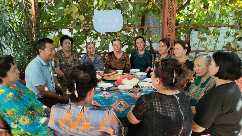 陈洪权在“伊犁人的奶茶会”上向居民征集诉求。通讯员 艾斯卡尔·米吉提摄