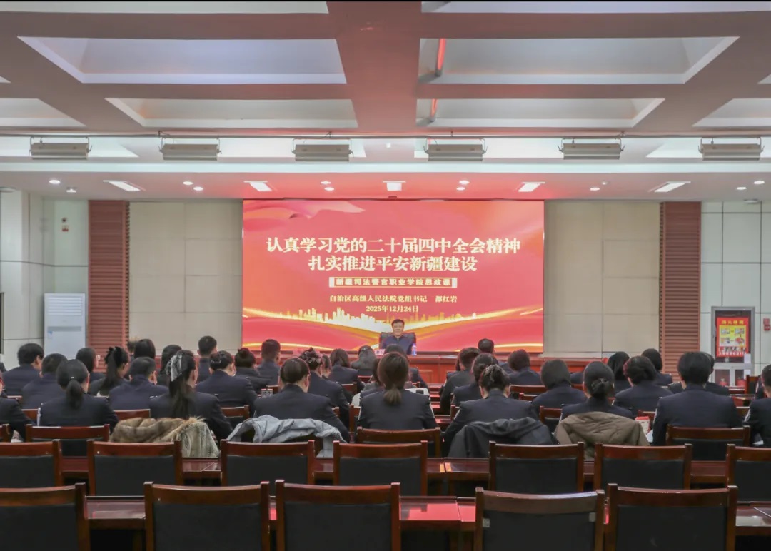 按照自治区党委统一安排,自治区高级人民法院党组书记都红岩12月24日到新疆司法警官职业学院,围绕认真学习党的二十届四中全会精神、扎实推进平安新疆建设,为广大师生讲授思政课。