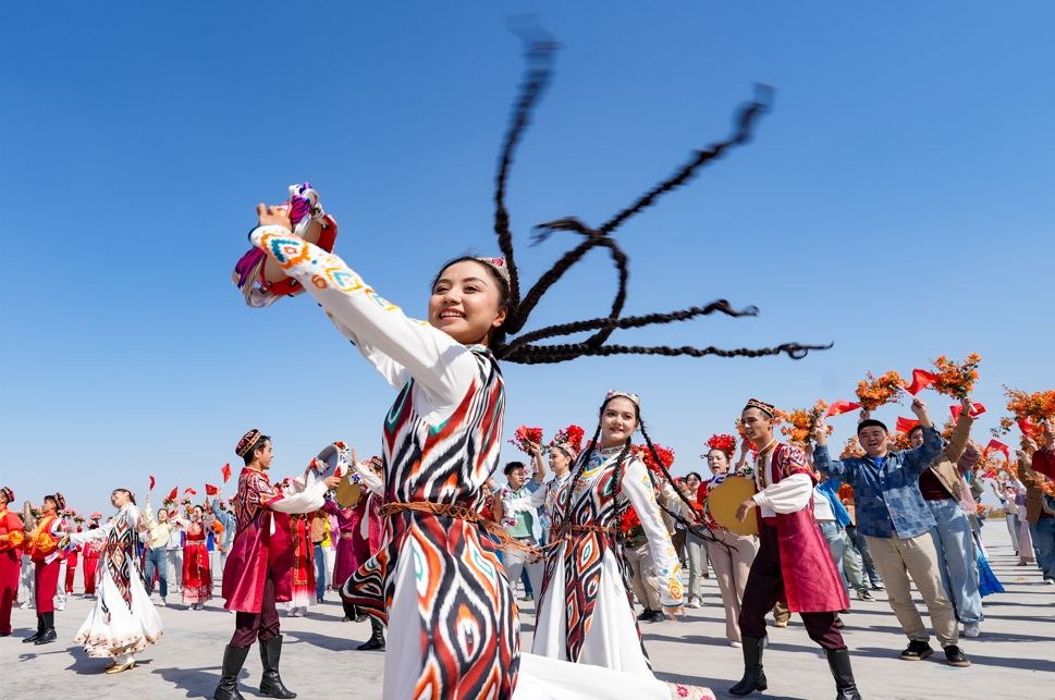 群众载歌载舞,喜迎新疆维吾尔自治区成立70周年 毕晓洋 摄