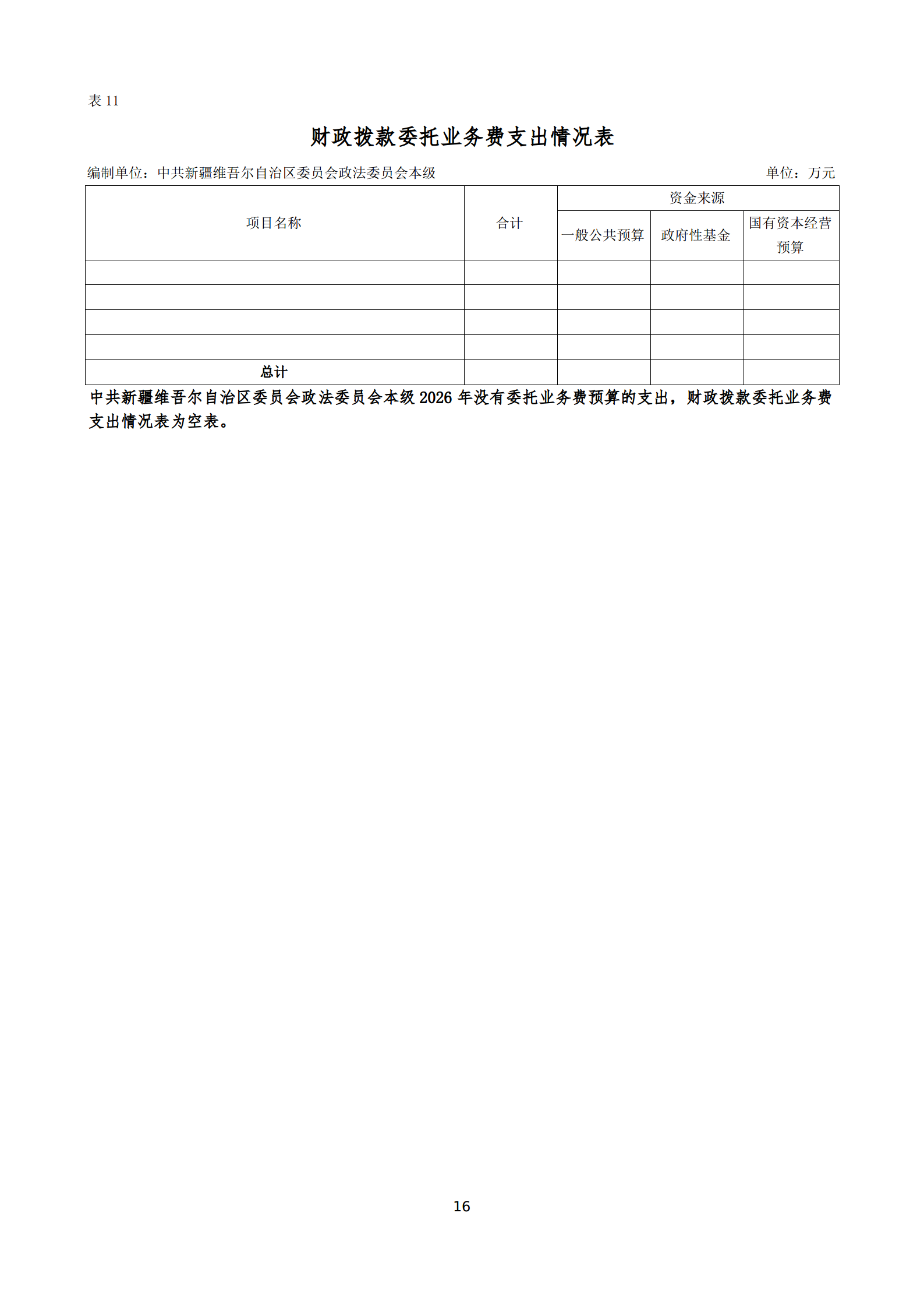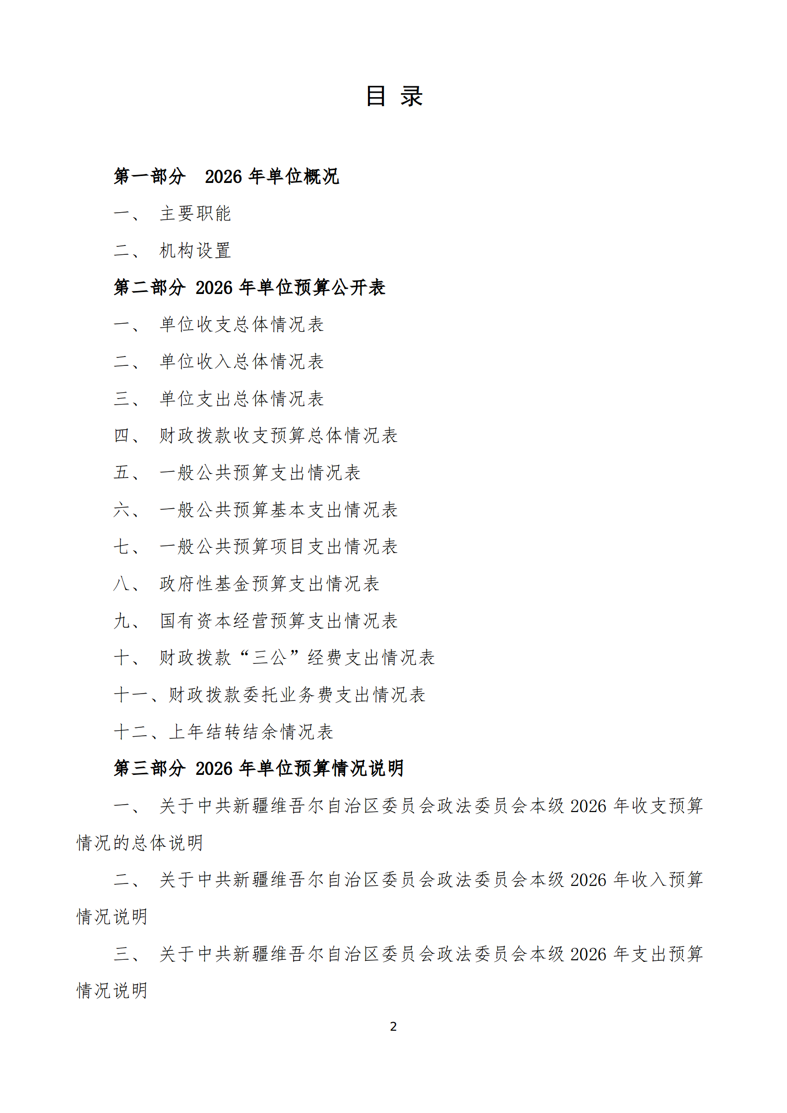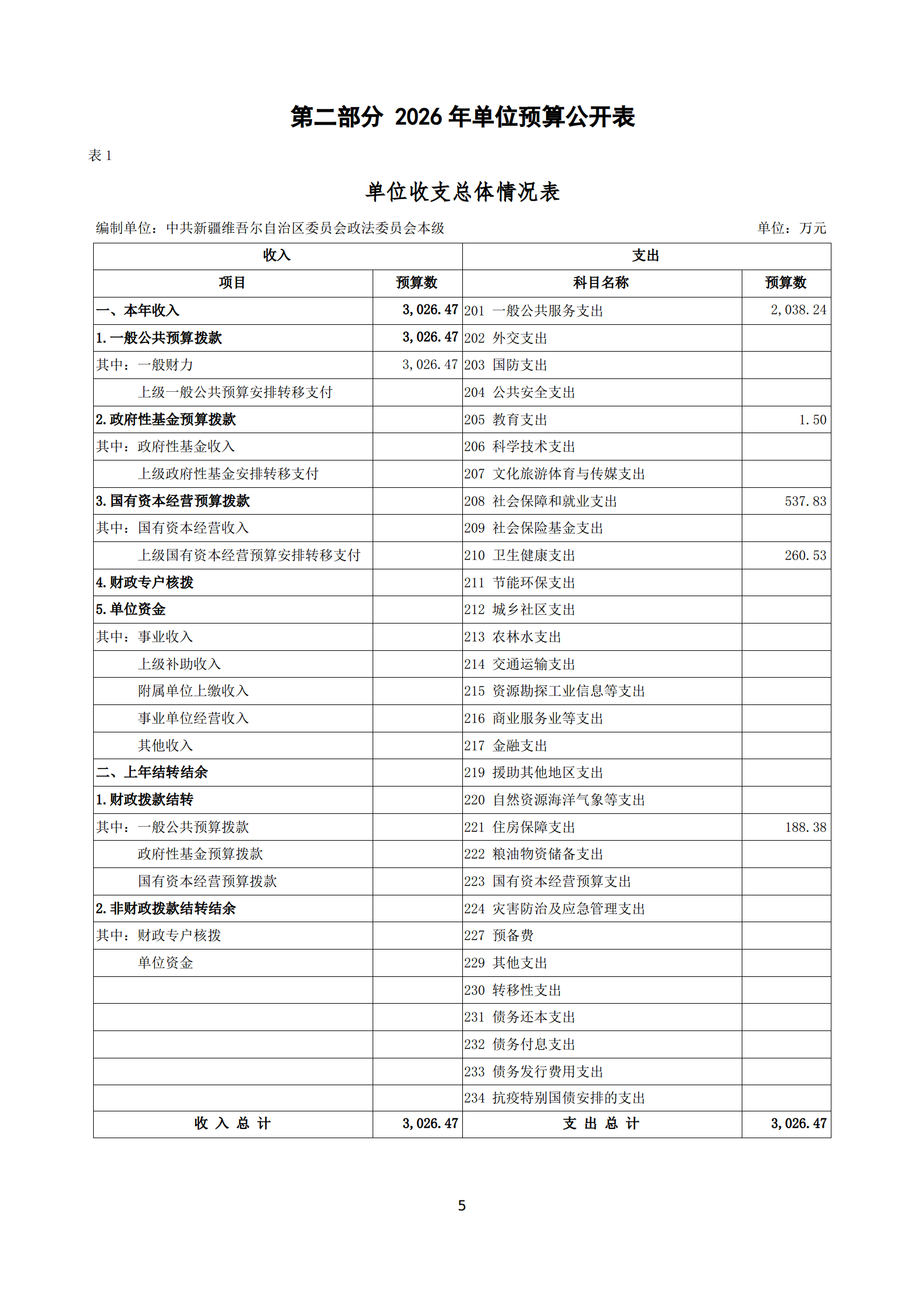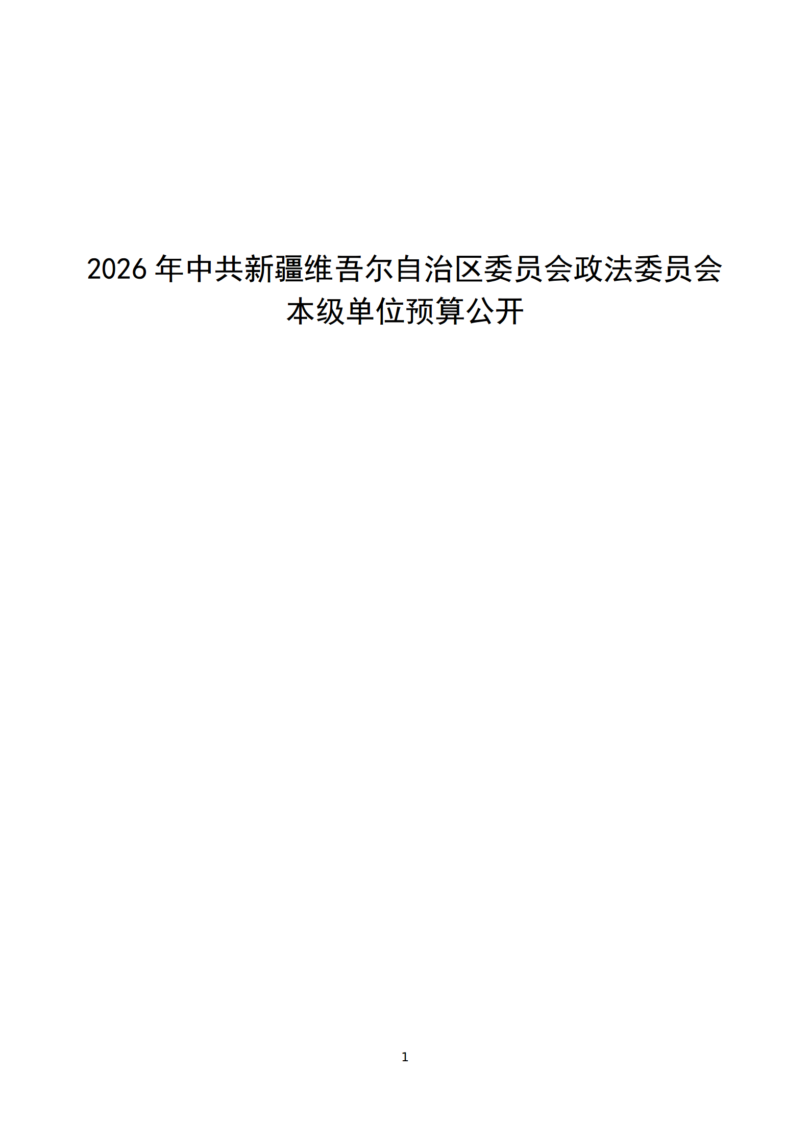 2026年中共新疆维吾尔自治区委员会政法委员会本级单位预算公开