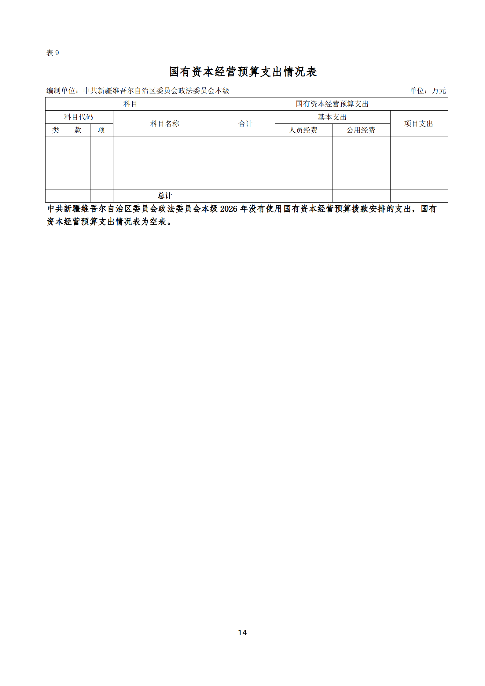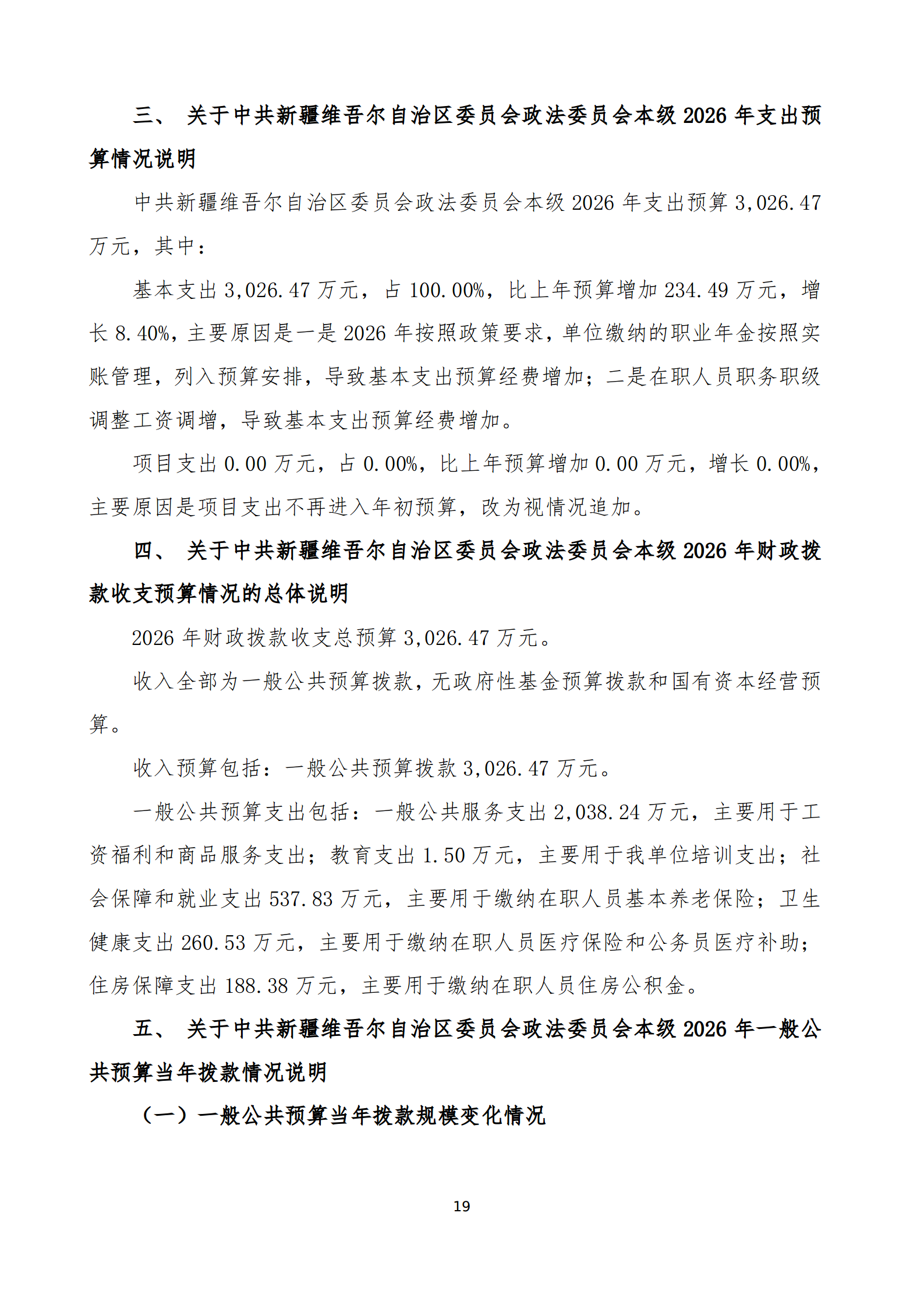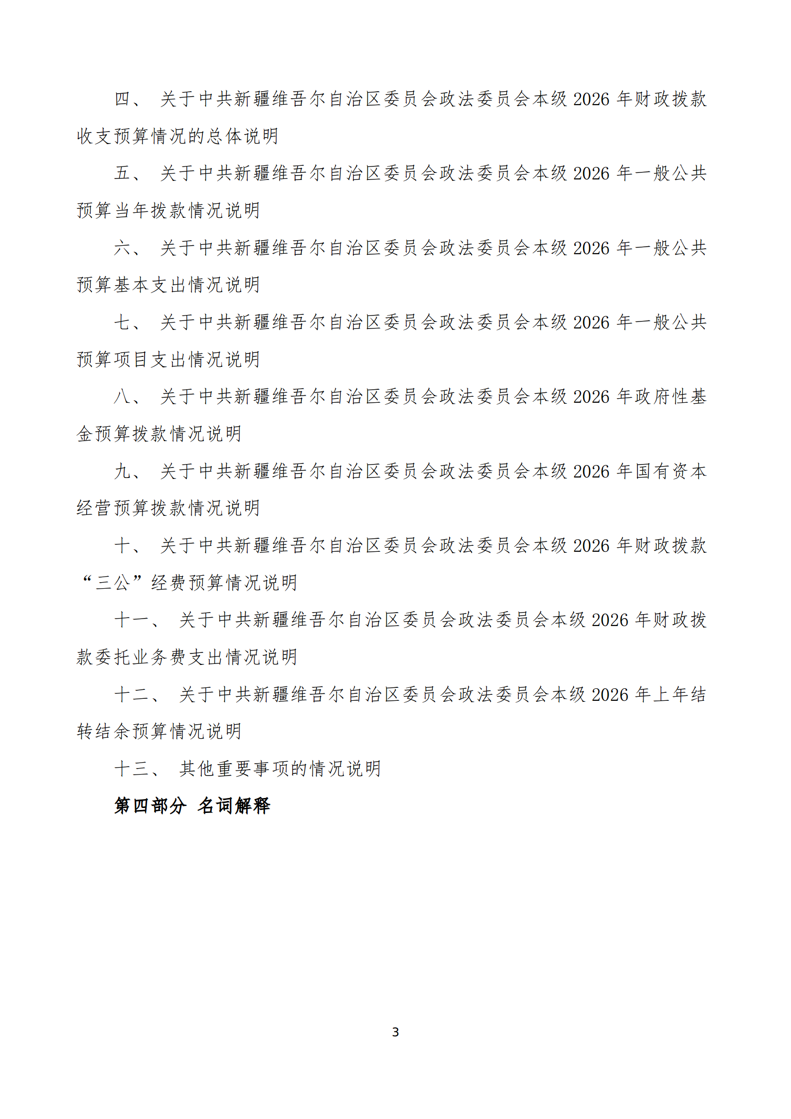 2026年中共新疆维吾尔自治区委员会政法委员会本级单位预算公开