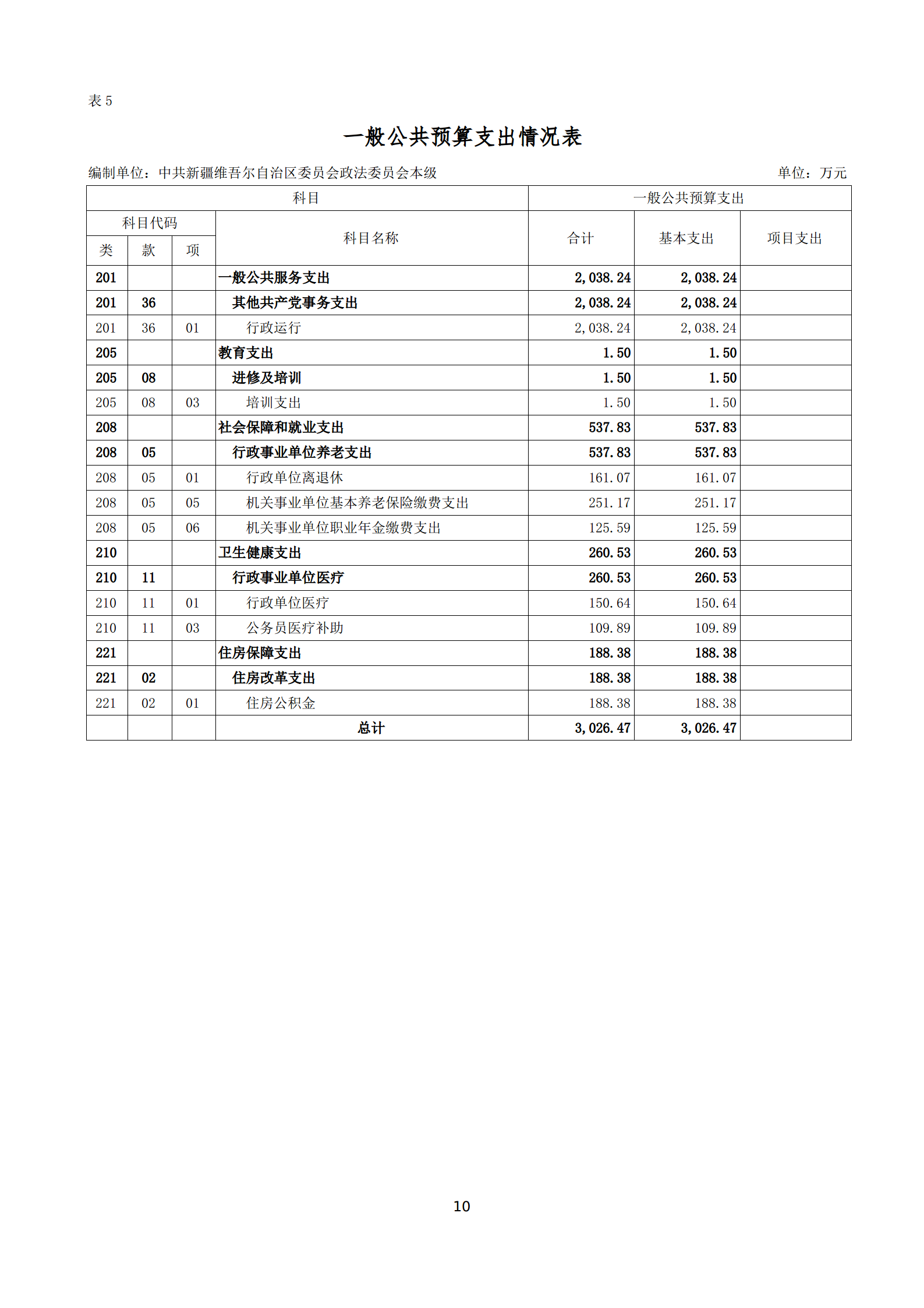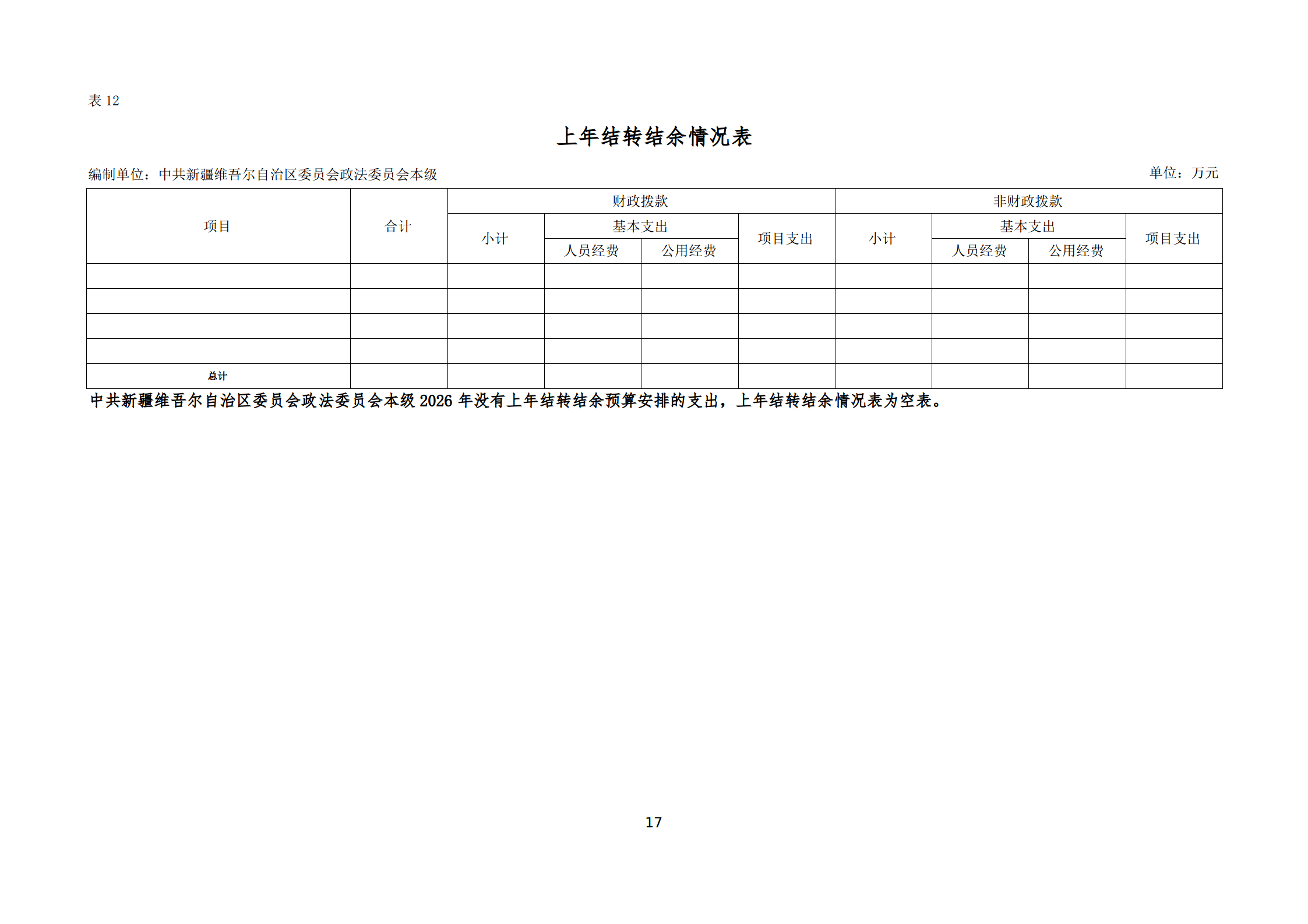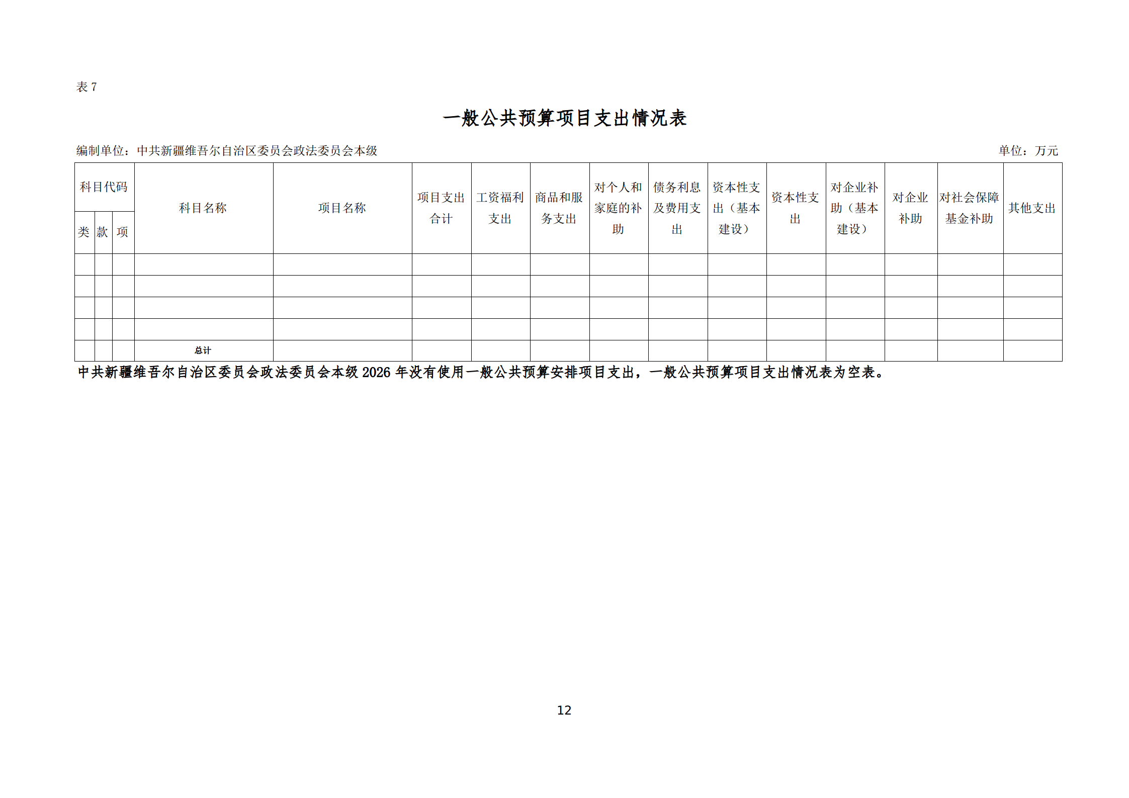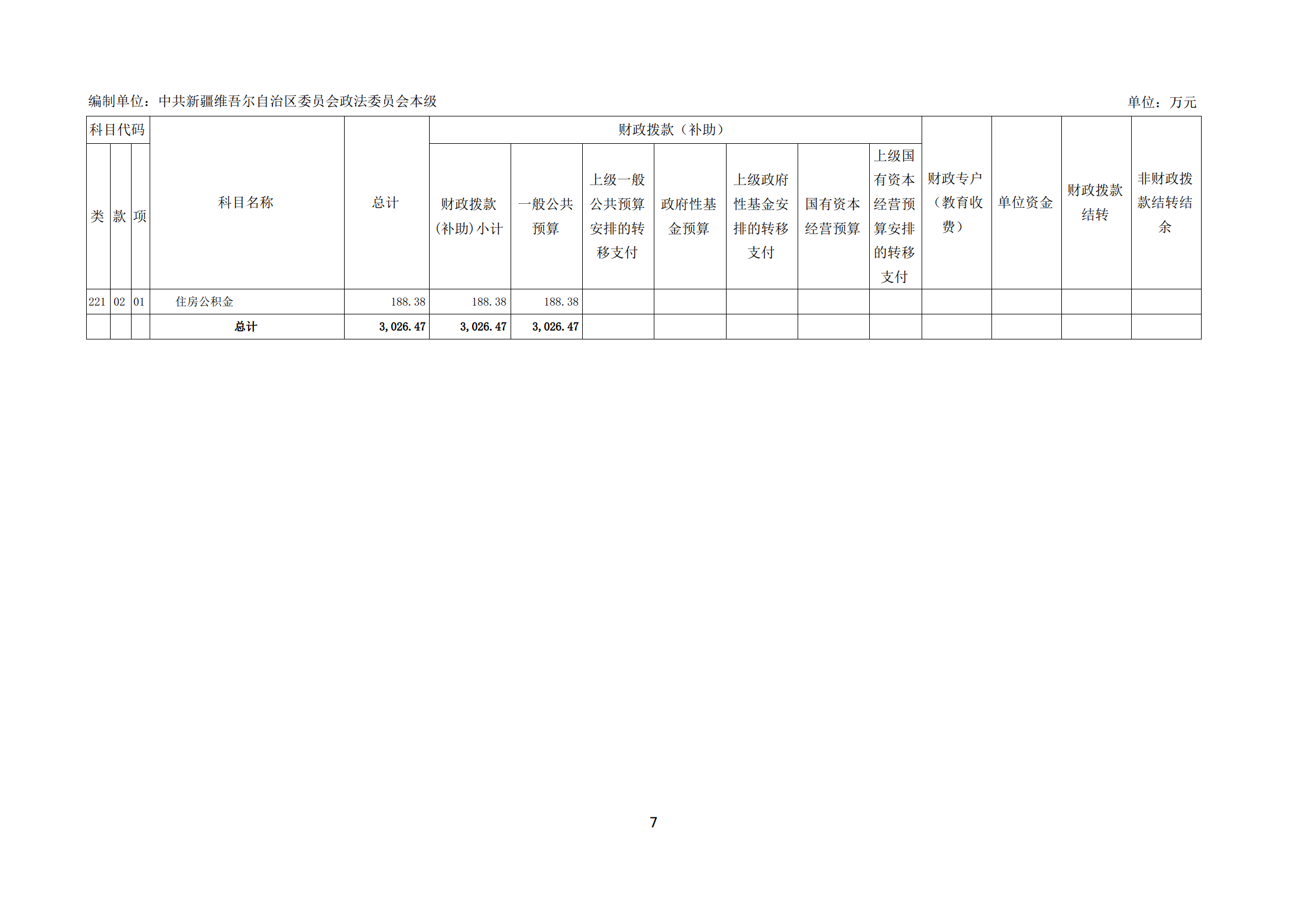 2026年中共新疆维吾尔自治区委员会政法委员会本级单位预算公开