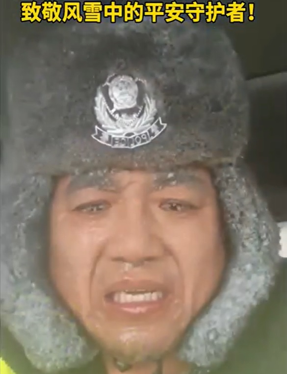 民警冒风雪救援冻成“冰人”