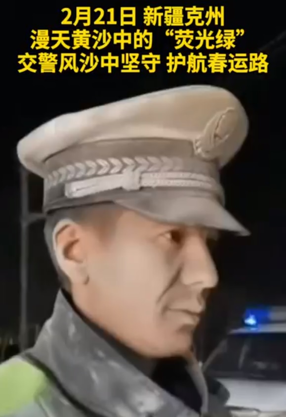 交警风沙中护航春运路